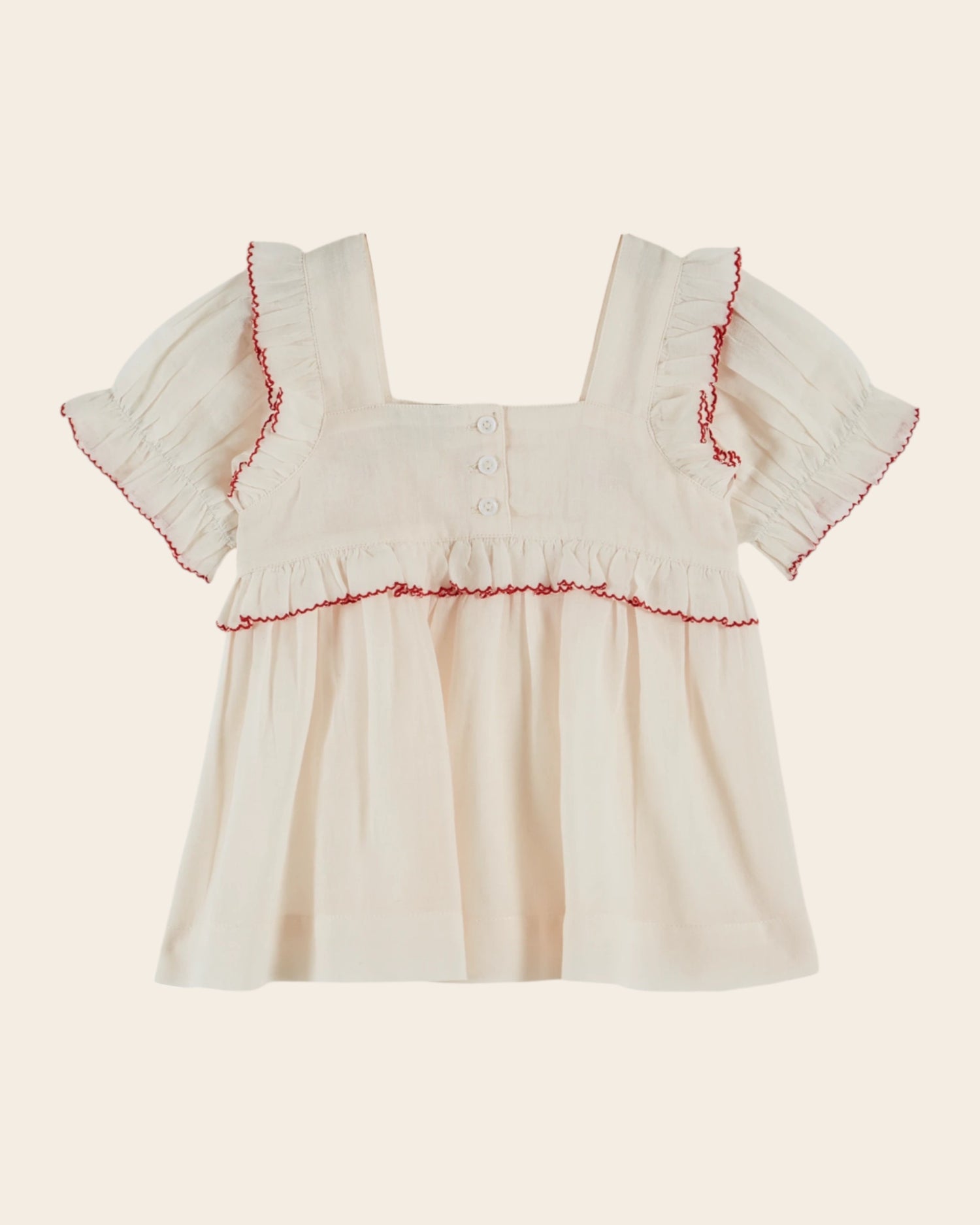{"id":9679128625481,"title":"Blouse - Brodée fraises crème","handle":"brouse-brodee-fraise-creme","description":"\u003cp\u003eBlouse en gaze de coton biologique crème. Une matière parfaite pour passer les chaudes journées d'été au frais.\n\u003cbr\u003eUne blouse qui a la forme d'un petit top à bretelles auquel des manches ont été ajoutées.\n\u003cbr\u003e- Fronces et froufrou festonné sous la découpe de l'empiècement devant \n\u003cbr\u003e- Manches ballon élastiquées avec effet volanté terminées par un feston rouge \n\u003cbr\u003e- Entournures dissimulées sous un petit volant festonné\n\u003cbr\u003e- 3 fraises brodées au centre de l'empiècement\n\u003cbr\u003e- Ouverture dos boutonnée sur la hauteur de l'empiècement dos\n\u003cbr\u003e- Assemblages côtés et manches en couture anglaise\u003c\/p\u003e","published_at":"2026-02-04T07:31:08+01:00","created_at":"2025-05-26T12:51:22+02:00","vendor":"Meli Melo Design Pvt Ltd","type":"Tops \u0026 Blouses","tags":["badge: coton bio","BLOUSES","blouses-chemises","coton bio","FILLE","FM-AD036-CREME","FM-SPLIT_MASTER_COLOR","girl","new in","SS26","SS26-KID"],"price":6900,"price_min":6900,"price_max":7500,"available":true,"price_varies":true,"compare_at_price":null,"compare_at_price_min":0,"compare_at_price_max":0,"compare_at_price_varies":false,"variants":[{"id":52373776695625,"title":"02A","option1":"02A","option2":null,"option3":null,"sku":"AD036-CREME-02A#282412","requires_shipping":true,"taxable":true,"featured_image":null,"available":true,"name":"Blouse - Brodée fraises crème - 02A","public_title":"02A","options":["02A"],"price":6900,"weight":77,"compare_at_price":null,"inventory_management":"shopify","barcode":"3664547655047","requires_selling_plan":false,"selling_plan_allocations":[]},{"id":52419557917001,"title":"03A","option1":"03A","option2":null,"option3":null,"sku":"AD036-CREME-03A#284413","requires_shipping":true,"taxable":true,"featured_image":null,"available":true,"name":"Blouse - Brodée fraises crème - 03A","public_title":"03A","options":["03A"],"price":6900,"weight":77,"compare_at_price":null,"inventory_management":"shopify","barcode":"3664547655054","requires_selling_plan":false,"selling_plan_allocations":[]},{"id":52419557949769,"title":"04A","option1":"04A","option2":null,"option3":null,"sku":"AD036-CREME-04A#284414","requires_shipping":true,"taxable":true,"featured_image":null,"available":true,"name":"Blouse - Brodée fraises crème - 04A","public_title":"04A","options":["04A"],"price":6900,"weight":77,"compare_at_price":null,"inventory_management":"shopify","barcode":"3664547655061","requires_selling_plan":false,"selling_plan_allocations":[]},{"id":52419557982537,"title":"05A","option1":"05A","option2":null,"option3":null,"sku":"AD036-CREME-05A#284415","requires_shipping":true,"taxable":true,"featured_image":null,"available":true,"name":"Blouse - Brodée fraises crème - 05A","public_title":"05A","options":["05A"],"price":6900,"weight":77,"compare_at_price":null,"inventory_management":"shopify","barcode":"3664547655078","requires_selling_plan":false,"selling_plan_allocations":[]},{"id":52419558015305,"title":"06A","option1":"06A","option2":null,"option3":null,"sku":"AD036-CREME-06A#284416","requires_shipping":true,"taxable":true,"featured_image":null,"available":true,"name":"Blouse - Brodée fraises crème - 06A","public_title":"06A","options":["06A"],"price":6900,"weight":77,"compare_at_price":null,"inventory_management":"shopify","barcode":"3664547655085","requires_selling_plan":false,"selling_plan_allocations":[]},{"id":52419558048073,"title":"08A","option1":"08A","option2":null,"option3":null,"sku":"AD036-CREME-08A#284417","requires_shipping":true,"taxable":true,"featured_image":null,"available":true,"name":"Blouse - Brodée fraises crème - 08A","public_title":"08A","options":["08A"],"price":7500,"weight":77,"compare_at_price":null,"inventory_management":"shopify","barcode":"3664547655092","requires_selling_plan":false,"selling_plan_allocations":[]},{"id":52419558080841,"title":"10A","option1":"10A","option2":null,"option3":null,"sku":"AD036-CREME-10A#284418","requires_shipping":true,"taxable":true,"featured_image":null,"available":true,"name":"Blouse - Brodée fraises crème - 10A","public_title":"10A","options":["10A"],"price":7500,"weight":77,"compare_at_price":null,"inventory_management":"shopify","barcode":"3664547655108","requires_selling_plan":false,"selling_plan_allocations":[]},{"id":52419558113609,"title":"12A","option1":"12A","option2":null,"option3":null,"sku":"AD036-CREME-12A#284419","requires_shipping":true,"taxable":true,"featured_image":null,"available":true,"name":"Blouse - Brodée fraises crème - 12A","public_title":"12A","options":["12A"],"price":7500,"weight":77,"compare_at_price":null,"inventory_management":"shopify","barcode":"3664547655115","requires_selling_plan":false,"selling_plan_allocations":[]},{"id":52419558146377,"title":"14A","option1":"14A","option2":null,"option3":null,"sku":"AD036-CREME-14A#284420","requires_shipping":true,"taxable":true,"featured_image":null,"available":true,"name":"Blouse - Brodée fraises crème - 14A","public_title":"14A","options":["14A"],"price":7500,"weight":77,"compare_at_price":null,"inventory_management":"shopify","barcode":"3664547655122","requires_selling_plan":false,"selling_plan_allocations":[]}],"images":["\/\/www.emileetida.com\/cdn\/shop\/files\/AD036-creme-01.jpg?v=1767715540","\/\/www.emileetida.com\/cdn\/shop\/files\/AD036-creme-02.jpg?v=1767715540","\/\/www.emileetida.com\/cdn\/shop\/files\/AD036-creme-03.jpg?v=1767715539"],"featured_image":"\/\/www.emileetida.com\/cdn\/shop\/files\/AD036-creme-01.jpg?v=1767715540","options":["Taille"],"media":[{"alt":null,"id":55413289779529,"position":1,"preview_image":{"aspect_ratio":0.8,"height":2500,"width":2000,"src":"\/\/www.emileetida.com\/cdn\/shop\/files\/AD036-creme-01.jpg?v=1767715540"},"aspect_ratio":0.8,"height":2500,"media_type":"image","src":"\/\/www.emileetida.com\/cd
