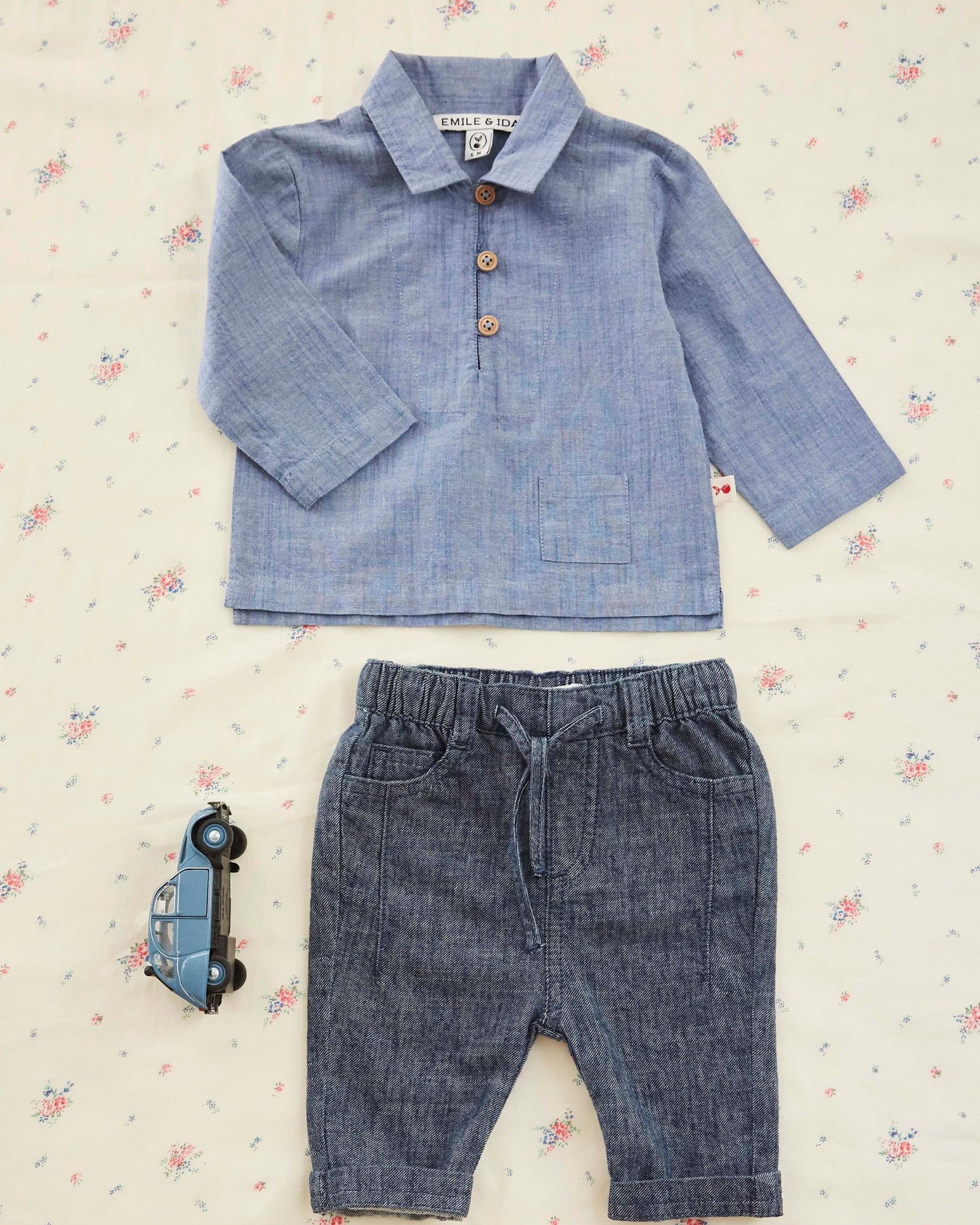 Heather blue chambray cotton jacket for future great sailors.