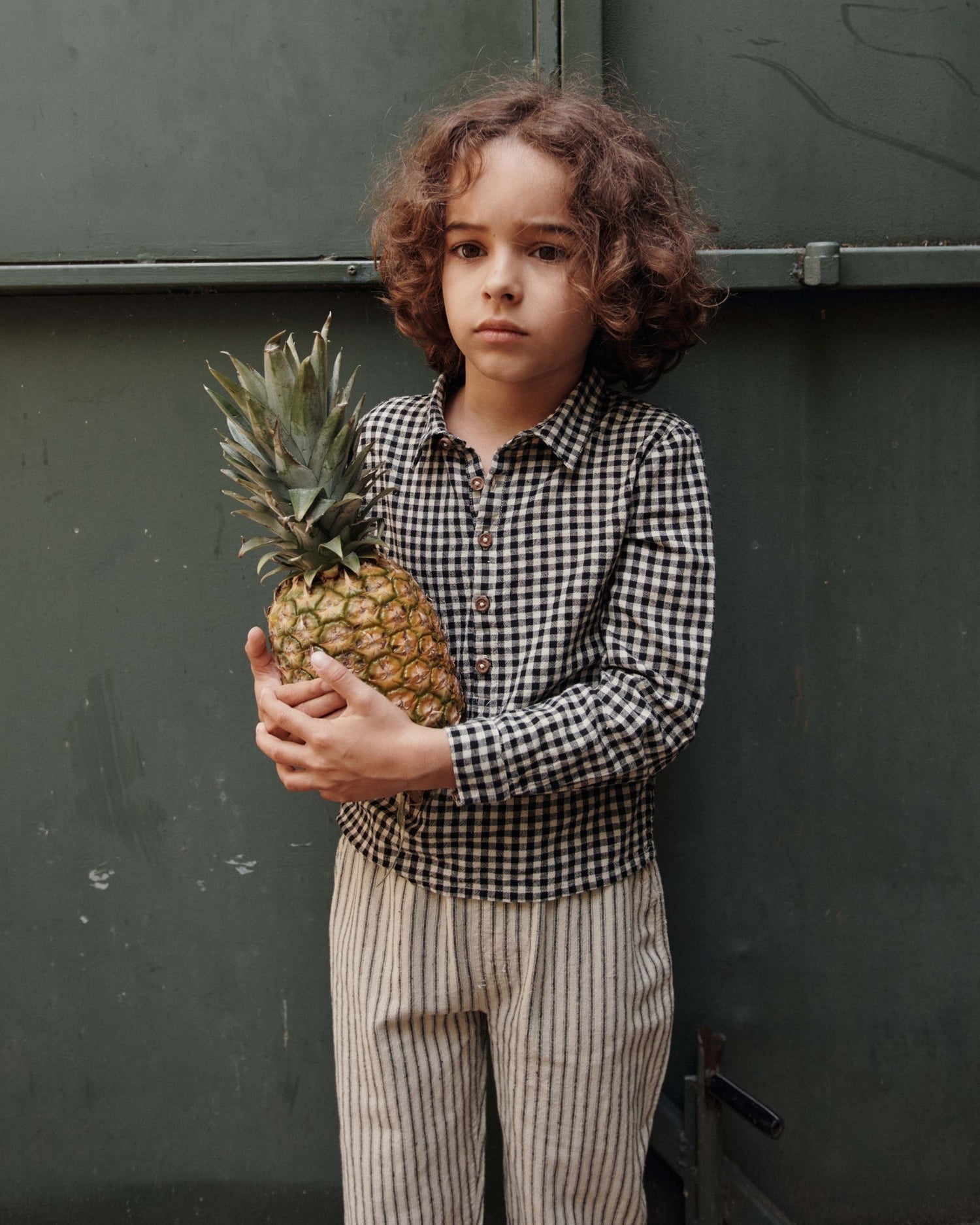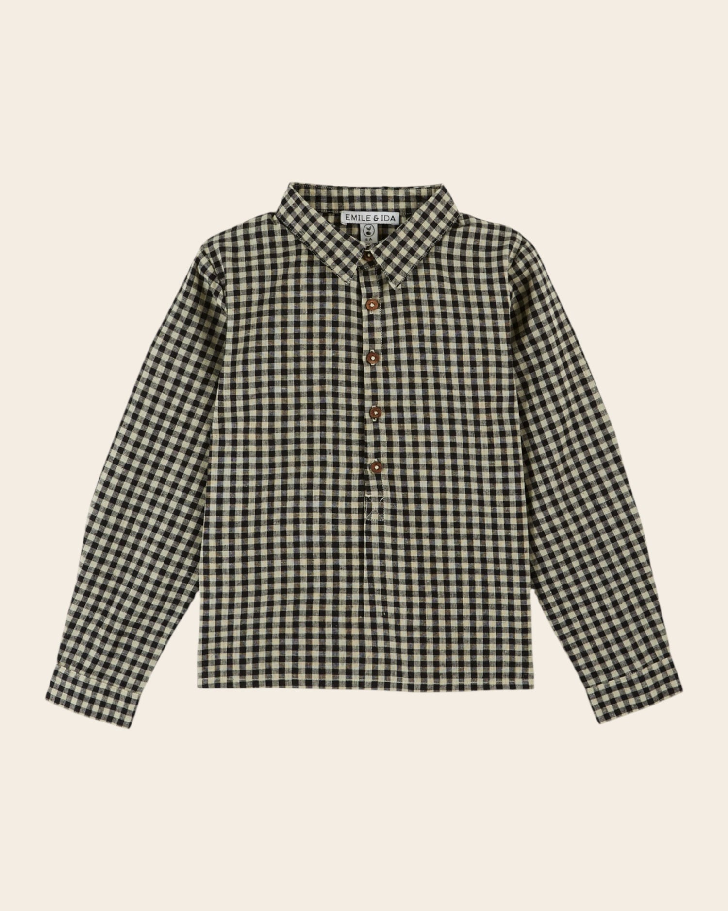 Kurta in cotton blend and flex gingham with small black and white checks.