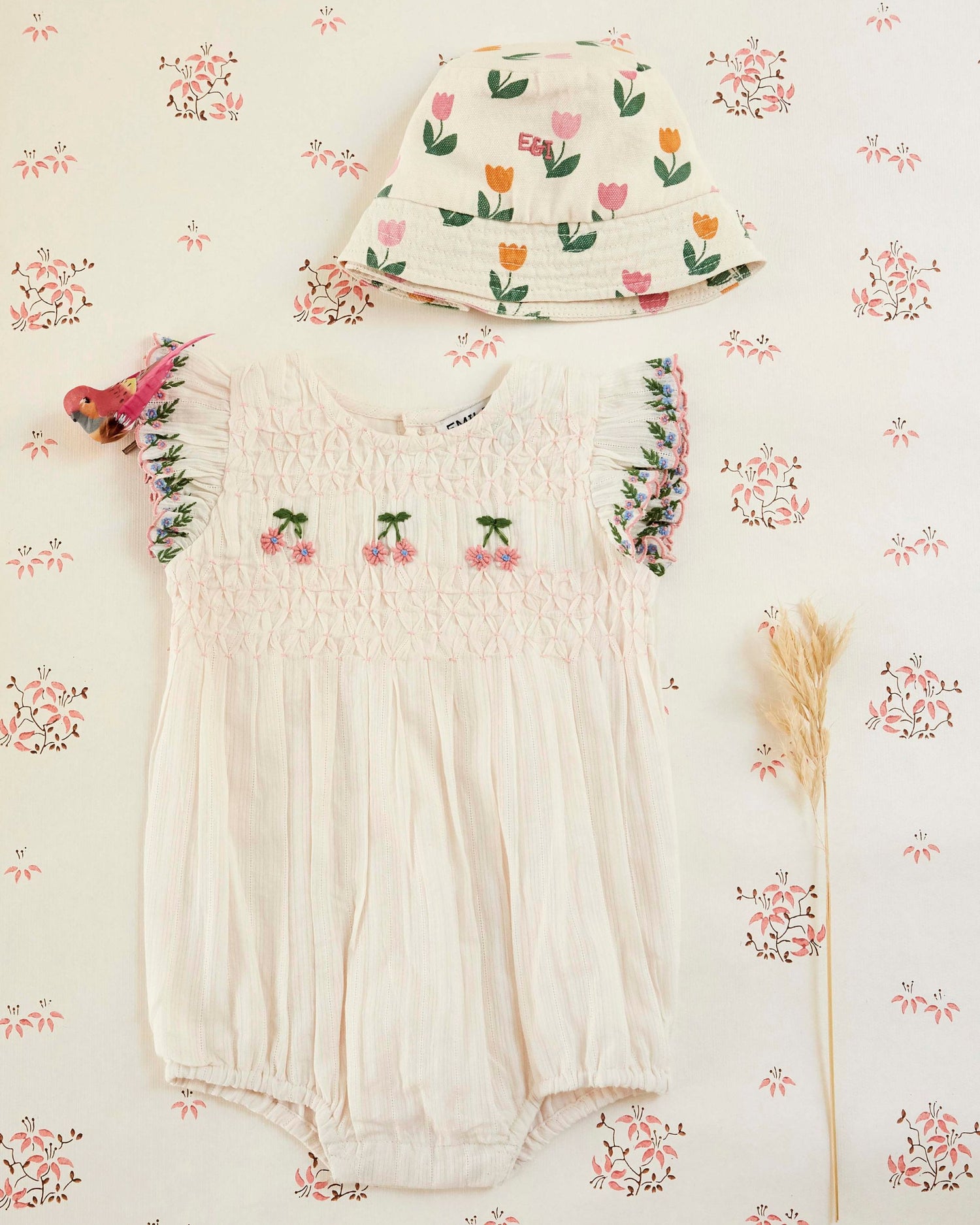 - Handmade smocking strips on the front