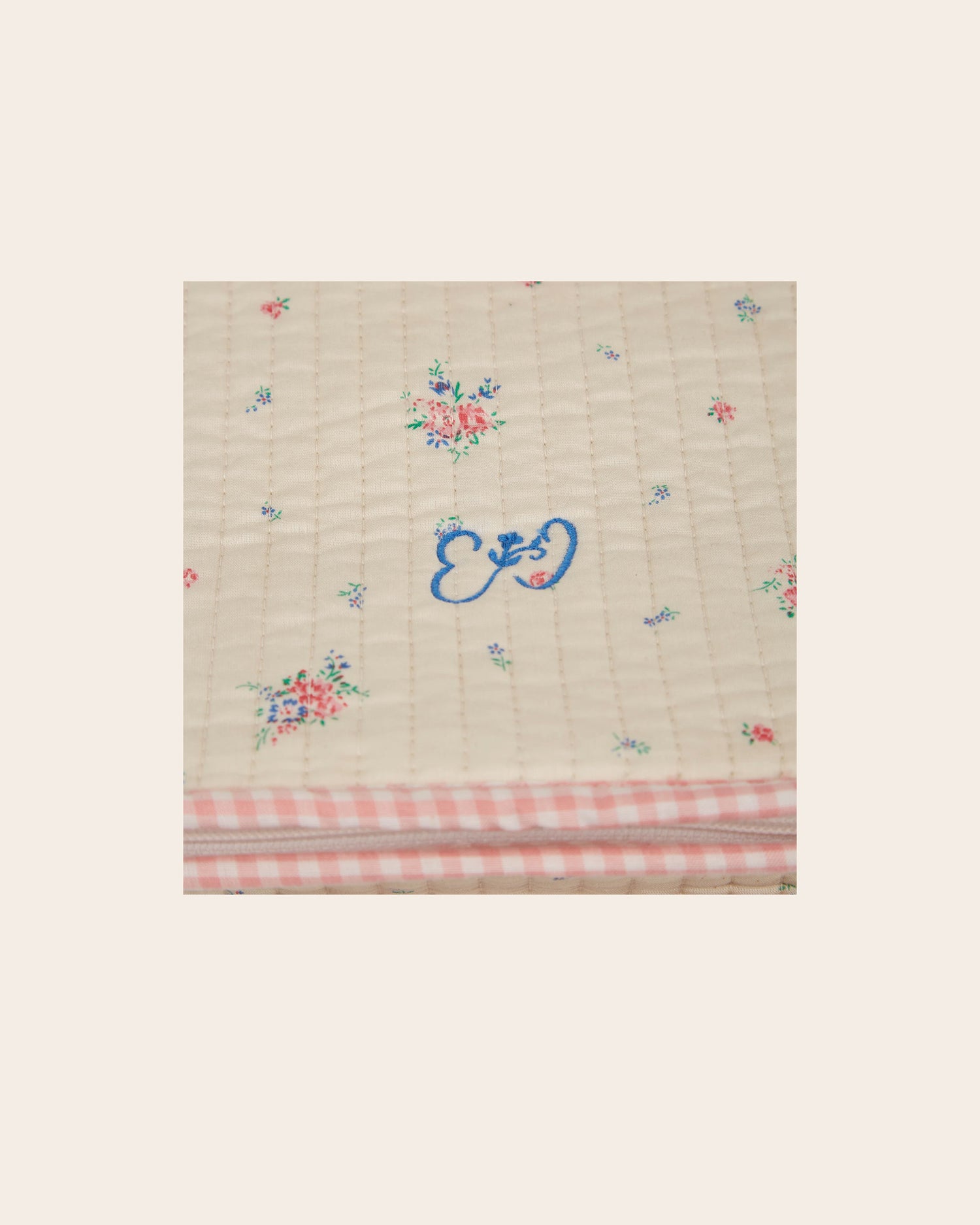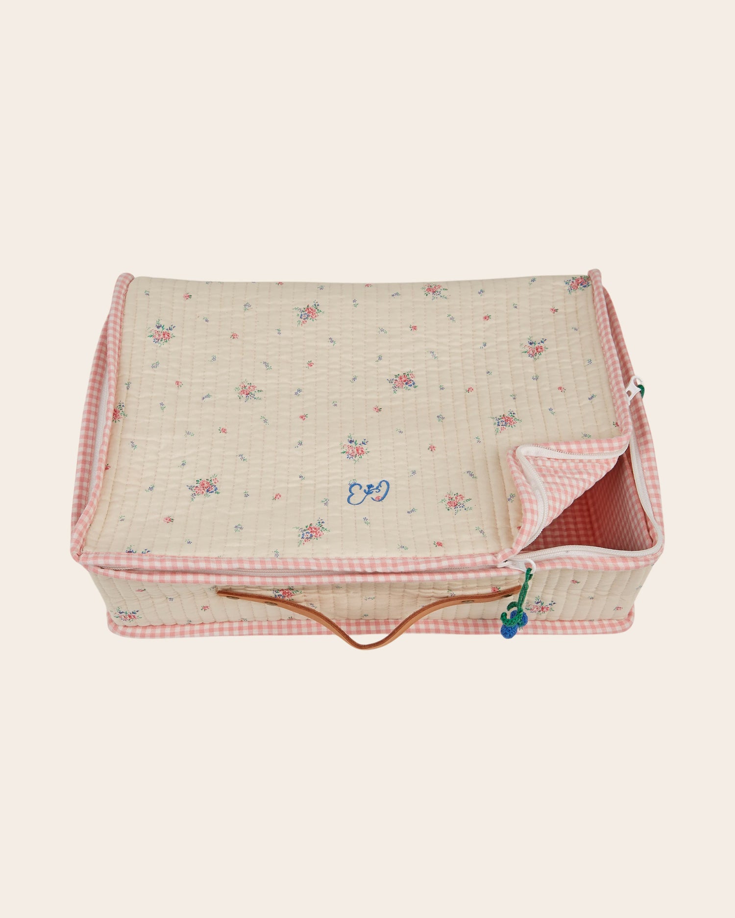 - Lined in pink and white organic cotton gingham