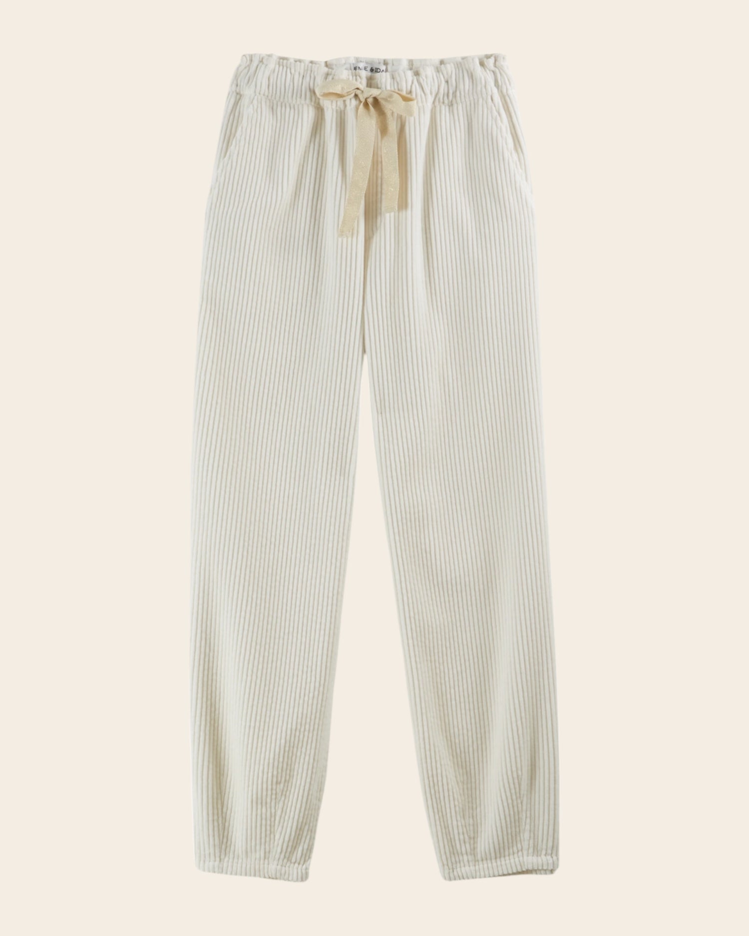 Ecru pants in coarse-ribbed cotton velvet.
