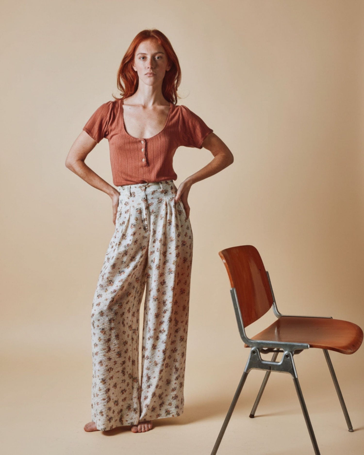 Loose-fitting pants in textured viscose with a floral print. With a high waist and wide legs, this XXL style flatters all figures.