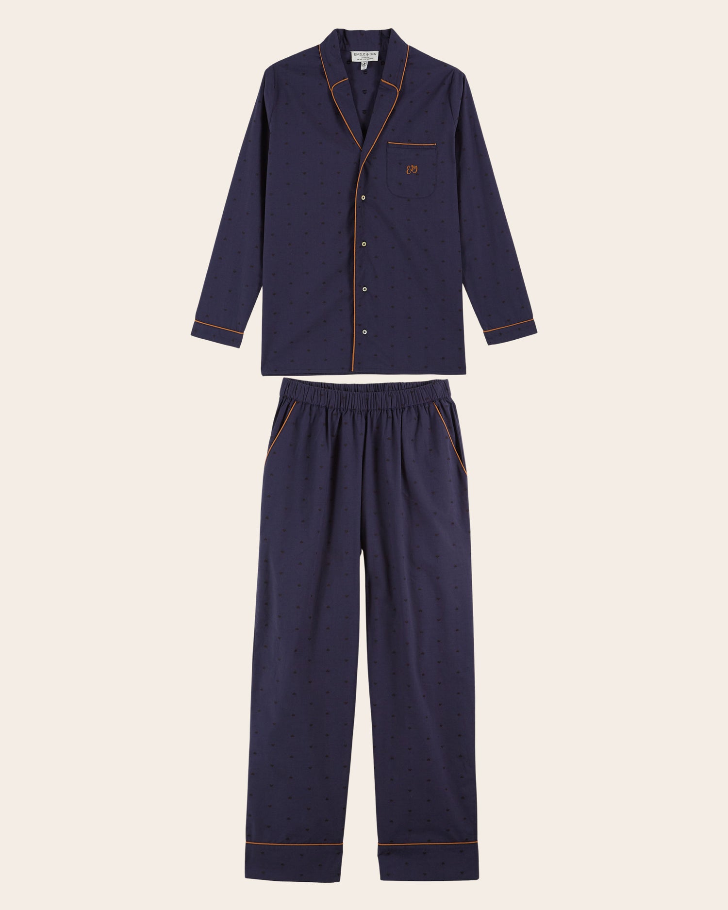 {"id":9827124609353,"title":"Pyjama femme - Coeurs brodés navy","handle":"pyjama-navy-1","description":"\u003cp\u003ePyjama en coton brodé de coeurs bleu nuit avec son pochon assorti. \u003cbr\u003e- Col tailleur \u003cbr\u003e- Poche sur la poitrine avec le monogramme E\u0026amp;I caramel\u003cbr\u003e- Boutons en nacre sur la chemise\u003cbr\u003e- Pantalon coupe wide monté sur une ceinture élastiquée\u003cbr\u003e- 2 poches italiennes\u003cbr\u003e- 1 poche avec le monogramme E\u0026amp;I caramel\u003cbr\u003e- Passepoil sur la pate de boutonnage, les poches, le col, les poignets et les chevilles\u003c\/p\u003e","published_at":"2025-11-24T11:54:22+01:00","created_at":"2025-09-18T14:31:47+02:00","vendor":"Meli Melo Design Pvt Ltd","type":"Pyjamas","tags":["AW25","AW25-EXCLU","AW25-WOMAN","FEMME","FM-IDA-ACPYJAMAN-NAVY","PYJAMAS","SOLDESH25","VPH25","WOMAN"],"price":5450,"price_min":5450,"price_max":5450,"available":true,"price_varies":false,"compare_at_price":10900,"compare_at_price_min":10900,"compare_at_price_max":10900,"compare_at_price_varies":false,"variants":[{"id":52968910455113,"title":"S","option1":"S","option2":null,"option3":null,"sku":"IDA-ACPYJAMAN-NAVY-S#294498","requires_shipping":true,"taxable":true,"featured_image":null,"available":false,"name":"Pyjama femme - Coeurs brodés navy - S","public_title":"S","options":["S"],"price":5450,"weight":298,"compare_at_price":10900,"inventory_management":"shopify","barcode":"3664547693407","requires_selling_plan":false,"selling_plan_allocations":[]},{"id":52968910487881,"title":"M","option1":"M","option2":null,"option3":null,"sku":"IDA-ACPYJAMAN-NAVY-M#294499","requires_shipping":true,"taxable":true,"featured_image":null,"available":true,"name":"Pyjama femme - Coeurs brodés navy - M","public_title":"M","options":["M"],"price":5450,"weight":298,"compare_at_price":10900,"inventory_management":"shopify","barcode":"3664547693414","requires_selling_plan":false,"selling_plan_allocations":[]},{"id":52968910520649,"title":"L","option1":"L","option2":null,"option3":null,"sku":"IDA-ACPYJAMAN-NAVY-L#294500","requires_shipping":true,"taxable":true,"featured_image":null,"available":false,"name":"Pyjama femme - Coeurs brodés navy - L","public_title":"L","options":["L"],"price":5450,"weight":298,"compare_at_price":10900,"inventory_management":"shopify","barcode":"3664547693421","requires_selling_plan":false,"selling_plan_allocations":[]}],"images":["\/\/www.emileetida.com\/cdn\/shop\/files\/pyjama-femme-navy-3.jpg?v=1764866101","\/\/www.emileetida.com\/cdn\/shop\/files\/35_c676606c-2b02-4852-8293-f0c242dad81a.jpg?v=1764866101","\/\/www.emileetida.com\/cdn\/shop\/files\/36_b2bca0eb-6c77-4bfc-b8d9-780b506c1ba1.jpg?v=1764866101","\/\/www.emileetida.com\/cdn\/shop\/files\/ida-pyjama-1.jpg?v=1764866101","\/\/www.emileetida.com\/cdn\/shop\/files\/ida-pyjama-4.jpg?v=1764866101","\/\/www.emileetida.com\/cdn\/shop\/files\/ida-pyjama-2.jpg?v=1764866101","\/\/www.emileetida.com\/cdn\/shop\/files\/ida-pyjama-3.jpg?v=1764866101","\/\/www.emileetida.com\/cdn\/shop\/files\/ida-pyjama-5.jpg?v=1764866101","\/\/www.emileetida.com\/cdn\/shop\/files\/ida-pyjama-6.jpg?v=1764866101","\/\/www.emileetida.com\/cdn\/shop\/files\/ACpyjama-6_3045d540-7baf-43e9-b69a-ee1430d5ac04.jpg?v=1764866101"],"featured_image":"\/\/www.emileetida.com\/cdn\/shop\/files\/pyjama-femme-navy-3.jpg?v=1764866101","options":["Taille"],"media":[{"alt":null,"id":54731108352329,"position":1,"preview_image":{"aspect_ratio":0.8,"height":2500,"width":2000,"src":"\/\/www.emileetida.com\/cdn\/shop\/files\/pyjama-femme-navy-3.jpg?v=1764866101"},"aspect_ratio":0.8,"height":2500,"media_type":"image","src":"\/\/www.emileetida.com\/cdn\/shop\/files\/pyjama-femme-navy-3.jpg?v=1764866101","width":2000},{"alt":null,"id":54400794657097,"position":2,"preview_image":{"aspect_ratio":0.8,"height":2500,"width":2000,"src":"\/\/www.emileetida.com\/cdn\/shop\/files\/35_c676606c-2b02-4852-8293-f0c242dad81a.jpg?v=1764866101"},"aspect_ratio":0.8,"height":2500,"media_type":"image","src":"\/\/www.emileetida.com\/cdn\/shop\/files\/35_c676606c-2b02-4852-8293-f0c242dad81a.jpg?v=1764866101","width":2000},{"alt":null,"id":54400794689865,"position":3,"preview_image":{"aspect_ratio":0.8,"height":2500,"width":2000,"src":"\/\/www.emileetida.com\/cdn\/shop\/files\/36_b2bca0eb-6c77-4bfc-b8d9-780b506c1ba1.jpg?v=1764866101"},"aspect_ratio":0.8,"height":2500,"media_type":"image","src":"\/\/www.emileetida.com\/cdn\/shop\/files\/36_b2bca0eb-6c77-4bfc-b8d9-780b506c1ba1.jpg?v=1764866101","width":2000},{"alt":null,"id":54466780463433,"position":4,"preview_image":{"aspect_ratio":0.8,"height":2500,"width":2000,"src":"\/\/www.emileetida.com\/cdn\/shop\/files\/ida-pyjama-1.jpg?v=1764866101"},"aspect_ratio":0.8,"height":2500,"media_type":"image","src":"\/\/www.emileetida.com\/cdn\/shop\/files\/ida-pyjama-1.jpg?v=1764866101","width":2000},{"alt":null,"id":54466780561737,"position":5,"preview_image":{"aspect_ratio":0.8,"height":2500,"width":2000,"src":"\/\/www.emileetida.com\/cdn\/shop\/files\/ida-pyjama-4.jpg?v=1764866101"},"aspect_ratio":0.8,"height":2500,"media_type":"image","src":"\/\/www.emileetida.com\/cdn\/shop\/files\/ida-pyjama-4.jpg?v=1764866101","width":2000},{"alt":null,"id":54466780496201,"position":6,"preview_image":{"aspect_ratio":0.8,"height":2500,"width":2000,"src":"\/\/www.emileetida.com\/cdn\/shop\/files\/ida-pyjama-2.jpg?v=1764866101"},"aspect_ratio":0.8,"height":2500,"media_type":"image","src":"\/\/www.emileetida.com\/cdn\/shop\/files\/ida-pyjama-2.jpg?v=1764866101","width":2000},{"alt":null,"id":54466780528969,"position":7,"preview_image":{"aspect_ratio":0.8,"height":2500,"width":2000,"src":"\/\/www.emileetida.com\/cdn\/shop\/files\/ida-pyjama-3.jpg?v=1764866101"},"aspect_ratio":0.8,"height":2500,"media_type":"image","src":"\/\/www.emileetida.com\/cdn\/shop\/files\/ida-pyjama-3.jpg?v=1764866101","width":2000},{"alt":null,"id":54466780594505,"position":8,"preview_image":{"aspect_ratio":0.8,"height":2500,"width":2000,"src":