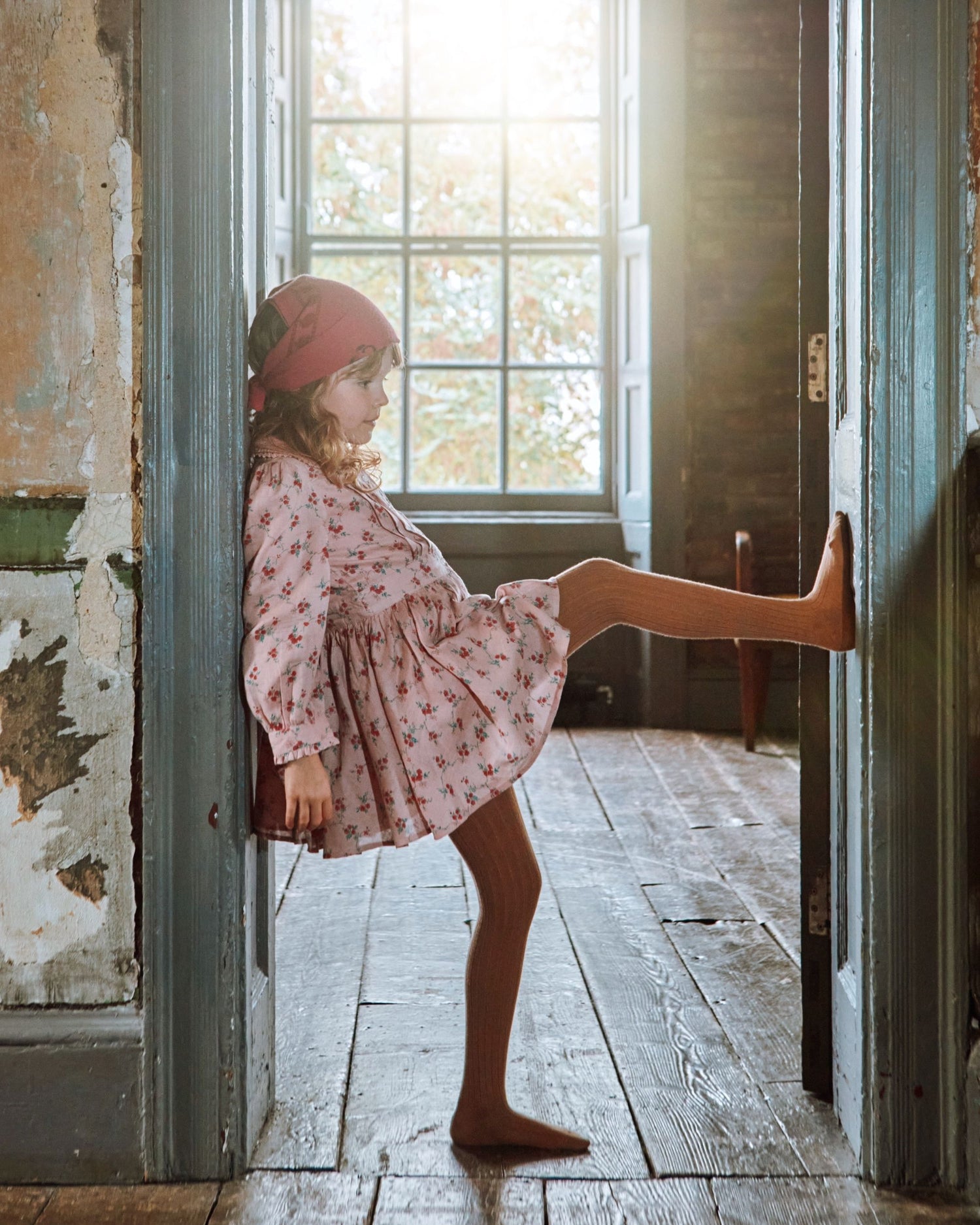 Cotton dress adorned with floral bouquets on a pink background.