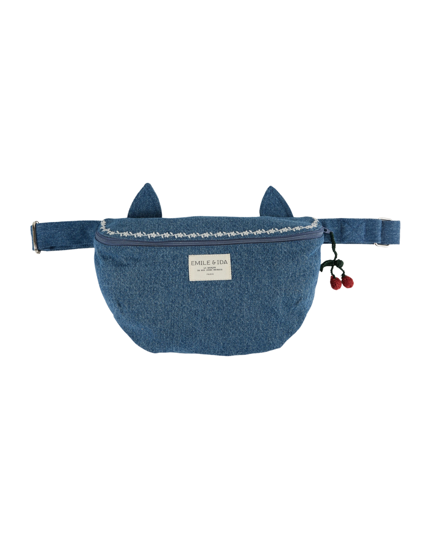 Whether you're tall or short, its strap adapts to all body shapes. It closes with a zip, the inside is lined with cotton fabric and two little ears top the flap.