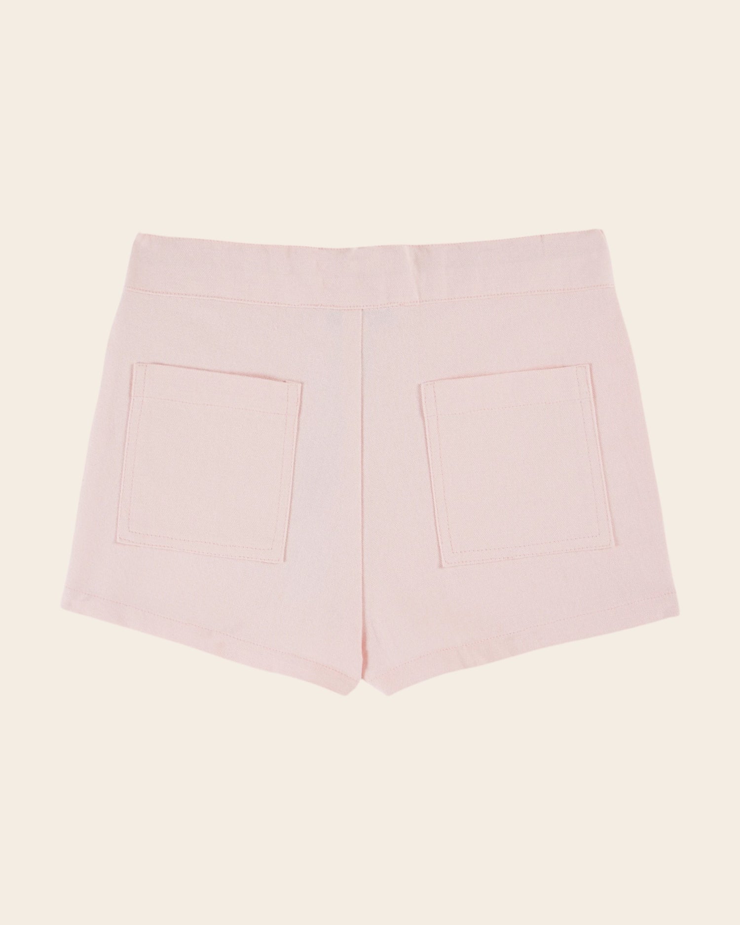 Pink denim and flex cotton canvas shorts.