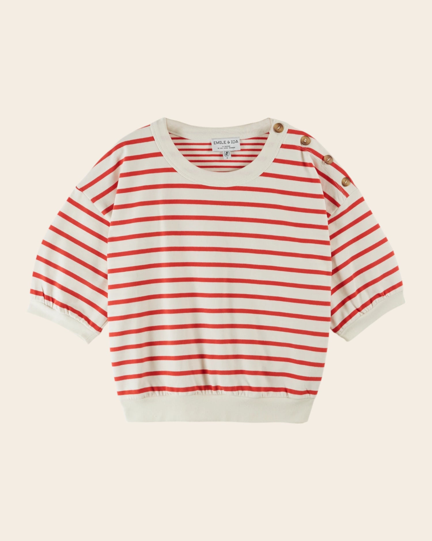 {"id":9685351072073,"title":"Sweat - Marinière rouge","handle":"sweat-mariniere-mc-marin-rouge","description":"\u003cp\u003eSweatshirt à manches courtes en coton molletonné bio rayé rouge et écru.\n\u003cbr\u003e- Coupe over-size \n\u003cbr\u003e- Matière d'une grande douceur\n\u003cbr\u003e- Ouverture boutonnée dans le raglan de l'emmanchure\n\u003cbr\u003e- Encolure ronde \n\u003cbr\u003e- Manches ballons\n\u003cbr\u003e- Finitions en bord-côte ton sur ton\u003c\/p\u003e","published_at":"2026-02-04T07:31:21+01:00","created_at":"2025-05-30T17:01:32+02:00","vendor":"Only You","type":"Sweats","tags":["badge: coton bio","coton bio","FEMME","FM-IDA-DORI-MARIN ROUGE","new in","SS26","SS26-WOMAN","SWEATSHIRTS","woman"],"price":12500,"price_min":12500,"price_max":12500,"available":true,"price_varies":false,"compare_at_price":null,"compare_at_price_min":0,"compare_at_price_max":0,"compare_at_price_varies":false,"variants":[{"id":52403068600649,"title":"XXS","option1":"XXS","option2":null,"option3":null,"sku":"IDA-DORI-MARIN-ROUGE-XXS#282692","requires_shipping":true,"taxable":true,"featured_image":null,"available":true,"name":"Sweat - Marinière rouge - XXS","public_title":"XXS","options":["XXS"],"price":12500,"weight":347,"compare_at_price":null,"inventory_management":"shopify","barcode":"3664547689363","requires_selling_plan":false,"selling_plan_allocations":[]},{"id":52417984528713,"title":"XS","option1":"XS","option2":null,"option3":null,"sku":"IDA-DORI-MARIN-ROUGE-XS#283612","requires_shipping":true,"taxable":true,"featured_image":null,"available":true,"name":"Sweat - Marinière rouge - XS","public_title":"XS","options":["XS"],"price":12500,"weight":347,"compare_at_price":null,"inventory_management":"shopify","barcode":"3664547689394","requires_selling_plan":false,"selling_plan_allocations":[]},{"id":52417984561481,"title":"S","option1":"S","option2":null,"option3":null,"sku":"IDA-DORI-MARIN-ROUGE-S#283614","requires_shipping":true,"taxable":true,"featured_image":null,"available":true,"name":"Sweat - Marinière rouge - S","public_title":"S","options":["S"],"price":12500,"weight":347,"compare_at_price":null,"inventory_management":"shopify","barcode":"3664547689417","requires_selling_plan":false,"selling_plan_allocations":[]},{"id":52417984594249,"title":"M","option1":"M","option2":null,"option3":null,"sku":"IDA-DORI-MARIN-ROUGE-M#283616","requires_shipping":true,"taxable":true,"featured_image":null,"available":true,"name":"Sweat - Marinière rouge - M","public_title":"M","options":["M"],"price":12500,"weight":347,"compare_at_price":null,"inventory_management":"shopify","barcode":"3664547689431","requires_selling_plan":false,"selling_plan_allocations":[]},{"id":52417984627017,"title":"L","option1":"L","option2":null,"option3":null,"sku":"IDA-DORI-MARIN-ROUGE-L#283618","requires_shipping":true,"taxable":true,"featured_image":null,"available":true,"name":"Sweat - Marinière rouge - L","public_title":"L","options":["L"],"price":12500,"weight":347,"compare_at_price":null,"inventory_management":"shopify","barcode":"3664547689455","requires_selling_plan":false,"selling_plan_allocations":[]},{"id":52417984659785,"title":"XL","option1":"XL","option2":null,"option3":null,"sku":"IDA-DORI-MARIN-ROUGE-XL#283620","requires_shipping":true,"taxable":true,"featured_image":null,"available":true,"name":"Sweat - Marinière rouge - XL","public_title":"XL","options":["XL"],"price":12500,"weight":347,"compare_at_price":null,"inventory_management":"shopify","barcode":"3664547689479","requires_selling_plan":false,"selling_plan_allocations":[]}],"images":["\/\/www.emileetida.com\/cdn\/shop\/files\/IDA-DORI-marin-rouge-01.jpg?v=1767886736","\/\/www.emileetida.com\/cdn\/shop\/files\/IDA-DORI-marin-rouge-02.jpg?v=1767886736","\/\/www.emileetida.com\/cdn\/shop\/files\/259_9908411b-fb47-4594-aa99-5f9cc6f885fe.jpg?v=1769177169","\/\/www.emileetida.com\/cdn\/shop\/files\/IDA-DORI-marin-rouge-03.jpg?v=1769177169","\/\/www.emileetida.com\/cdn\/shop\/files\/260.jpg?v=1769177169","\/\/www.emileetida.com\/cdn\/shop\/files\/IDA-DORI-marin-rouge-04.jpg?v=1769177169","\/\/www.emileetida.com\/cdn\/shop\/files\/IDA-DORI-marin-rouge-05.jpg?v=1769177169"],"featured_image":"\/\/www.emileetida.com\/cdn\/shop\/files\/IDA-DORI-marin-rouge-01.jpg?v=1767886736","options":["Taille"],"media":[{"alt":null,"id":55465675129161,"position":1,"preview_image":{"aspect_ratio":0.8,"height":2500,"width":2000,"src":"\/\/www.emileetida.com\/cdn\/shop\/files\/IDA-DORI-marin-rouge-01.jpg?v=1767886736"},"aspect_ratio":0.8,"height":2500,"media_type":"image","src":"\/\/www.emileetida.com\/cdn\/shop\/files\/IDA-DORI-marin-rouge-01.jpg?v=1767886736","width":2000},{"alt":null,"id":55465675161929,"position":2,"preview_image":{"aspect_ratio":0.8,"height":2500,"width":2000,"src":"\/\/www.emileetida.com\/cdn\/shop\/files\/IDA-DORI-marin-rouge-02.jpg?v=1767886736"},"aspect_ratio":0.8,"height":2500,"media_type":"image","src":"\/\/www.emileetida.com\/cdn\/shop\/files\/IDA-DORI-marin-rouge-02.jpg?v=1767886736","width":2000},{"alt":null,"id":55830367240521,"position":3,"preview_image":{"aspect_ratio":0.8,"height":2500,"width":2000,"src":"\/\/www.emileetida.com\/cdn\/shop\/files\/259_9908411b-fb47-4594-aa99-5f9cc6f885fe.jpg?v=1769177169"},"aspect_ratio":0.8,"height":2500,"media_type":"image","src":"\/\/www.emileetida.com\/cdn\/shop\/files\/259_9908411b-fb47-4594-aa99-5f9cc6f885fe.jpg?v=1769177169","width":2000},{"alt":null,"id":55465675194697,"position":4,"preview_image":{"aspect_ratio":0.8,"height":2500,"width":2000,"src":"\/\/www.emileetida.com\/cdn\/shop\/files\/IDA-DORI-marin-rouge-03.jpg?v=1769177169"},"aspect_ratio":0.8,"height":2500,"media_type":"image","src":"\/\/www.emileetida.com\/cdn\/shop\/files\/IDA-DORI-marin-rouge-03.jpg?v=1769177169","width":2000},{"alt":null,"id":55830368846153,"position":5,"preview_image":{"aspect_ratio":0.8,"height":2500,"width":2000,"src":"\/\/www.emileetida.com\/cdn\/shop\/files\/260.jpg?v=1769177169"},"aspect_ratio":0.8,"heig