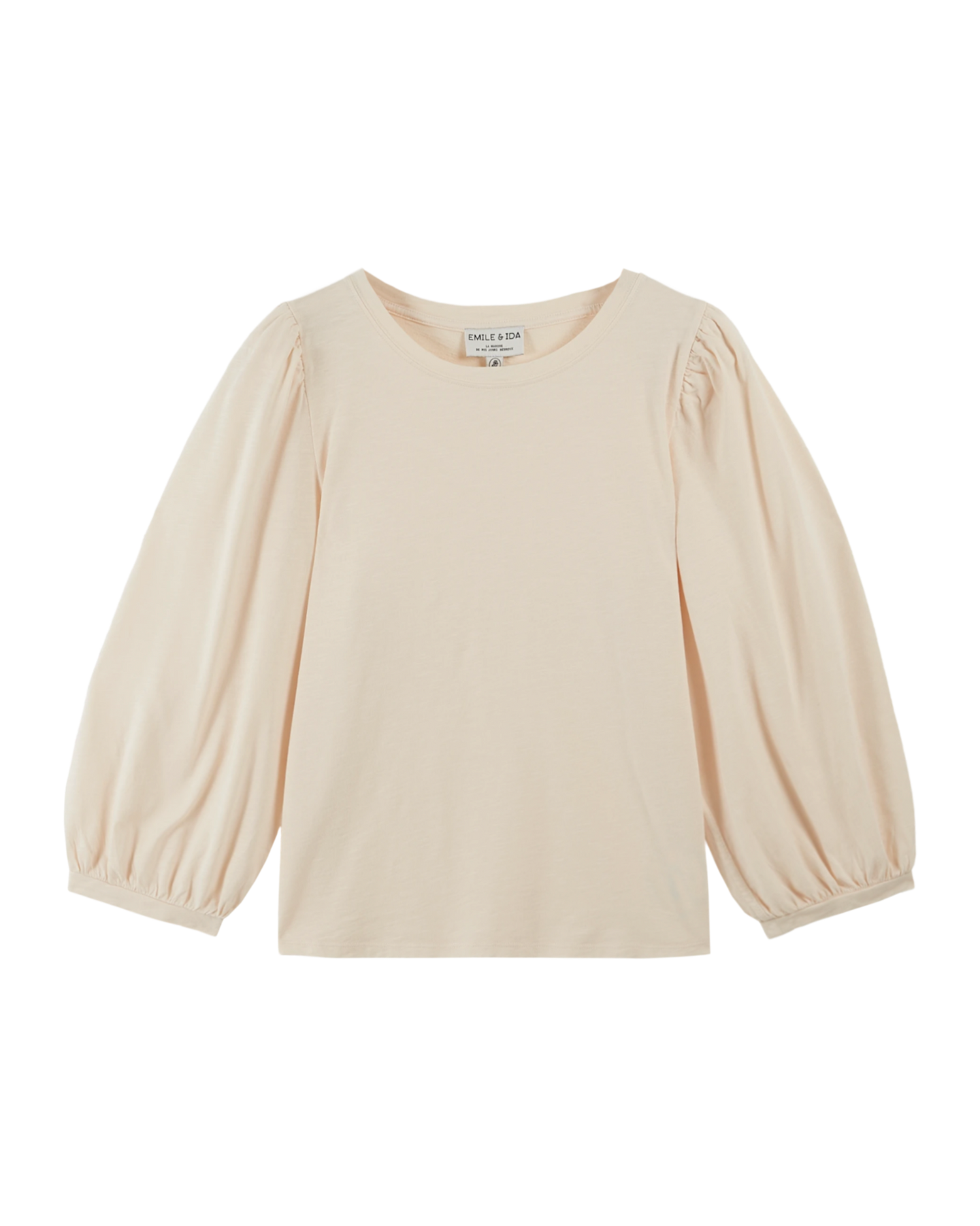 {"id":9150272667977,"title":"Cream organic cotton balloon sleeve t-shirt","handle":"t-shirt-coton-bio-flamme-creme-ida-ayda_creme","description":"\u003cp\u003e T-shirt in ecru slub organic cotton jersey.\u003cbr\u003e A t-shirt made from a thick material with a brushed interior for added softness and warmth.\u003cbr\u003e Straight cut, long puffed sleeves, thanks to the gathers at the sleeve caps, tightened at the wrists. A ribbed band finishes the bottom of the sleeves and the slightly scooped neckline.\u003c\/p\u003e\n\n\u003cp\u003e \u003cb\u003eSize advice:\u003c\/b\u003e we advise you to take your usual size.\u003cbr\u003e\u003cbr\u003e Measurements for a size S:\u003cbr data-mce-fragment=\"1\"\u003e Length: 58 cm\u003cbr data-mce-fragment=\"1\"\u003e Chest width: 44 cm\u003cbr\u003e\u003c\/p\u003e","published_at":"2025-10-31T16:45:24+01:00","created_at":"2024-06-27T11:44:22+02:00","vendor":"Junius Texteis","type":"T-shirts","tags":["AW24","AW24-WOMAN","AW25","AW25-WOMAN","CREME","FEMME","FM-IDA-AYDA-CREME","IDA-AYDA-CREME","IDA-AYDA_CREME","permanent","TEE SHIRTS","tops-tee-shirts","woman"],"price":7500,"price_min":7500,"price_max":7500,"available":true,"price_varies":false,"compare_at_price":null,"compare_at_price_min":0,"compare_at_price_max":0,"compare_at_price_varies":false,"variants":[{"id":50293364785481,"title":"XXS","option1":"XXS","option2":null,"option3":null,"sku":"IDA-AYDA-CREME-XXS#246760","requires_shipping":true,"taxable":true,"featured_image":null,"available":true,"name":"Cream organic cotton balloon sleeve t-shirt - XXS","public_title":"XXS","options":["XXS"],"price":7500,"weight":150,"compare_at_price":null,"inventory_management":"shopify","barcode":"3664547566640","requires_selling_plan":false,"selling_plan_allocations":[]},{"id":50293364818249,"title":"XS","option1":"XS","option2":null,"option3":null,"sku":"IDA-AYDA-CREME-XS#247559","requires_shipping":true,"taxable":true,"featured_image":null,"available":false,"name":"Cream organic cotton balloon sleeve t-shirt - XS","public_title":"XS","options":["XS"],"price":7500,"weight":150,"compare_at_price":null,"inventory_management":"shopify","barcode":"3664547566657","requires_selling_plan":false,"selling_plan_allocations":[]},{"id":50293364851017,"title":"S","option1":"S","option2":null,"option3":null,"sku":"IDA-AYDA-CREME-S#247560","requires_shipping":true,"taxable":true,"featured_image":null,"available":true,"name":"Cream organic cotton balloon sleeve t-shirt - S","public_title":"S","options":["S"],"price":7500,"weight":150,"compare_at_price":null,"inventory_management":"shopify","barcode":"3664547566664","requires_selling_plan":false,"selling_plan_allocations":[]},{"id":50293364883785,"title":"M","option1":"M","option2":null,"option3":null,"sku":"IDA-AYDA-CREME-M#247561","requires_shipping":true,"taxable":true,"featured_image":null,"available":false,"name":"Cream organic cotton balloon sleeve t-shirt - M","public_title":"M","options":["M"],"price":7500,"weight":150,"compare_at_price":null,"inventory_management":"shopify","barcode":"3664547566671","requires_selling_plan":false,"selling_plan_allocations":[]},{"id":50293364916553,"title":"L","option1":"L","option2":null,"option3":null,"sku":"IDA-AYDA-CREME-L#247562","requires_shipping":true,"taxable":true,"featured_image":null,"available":false,"name":"Cream organic cotton balloon sleeve t-shirt - L","public_title":"L","options":["L"],"price":7500,"weight":150,"compare_at_price":null,"inventory_management":"shopify","barcode":"3664547566688","requires_selling_plan":false,"selling_plan_allocations":[]},{"id":50293364949321,"title":"XL","option1":"XL","option2":null,"option3":null,"sku":"IDA-AYDA-CREME-XL#247563","requires_shipping":true,"taxable":true,"featured_image":null,"available":false,"name":"Cream organic cotton balloon sleeve t-shirt - XL","public_title":"XL","options":["XL"],"price":7500,"weight":150,"compare_at_price":null,"inventory_management":"shopify","barcode":"3664547566695","requires_selling_plan":false,"selling_plan_allocations":[]}],"images":["\/\/www.emileetida.com\/cdn\/shop\/files\/ida_ayda_creme_66b054fc-60db-450c-8724-7f6cb7aac133.png?v=1727799723"],"featured_image":"\/\/www.emileetida.com\/cdn\/shop\/files\/ida_ayda_creme_66b054fc-60db-450c-8724-7f6cb7aac133.png?v=1727799723","options":["Size"],"media":[{"alt":null,"id":49050421592393,"position":1,"preview_image":{"aspect_ratio":0.8,"height":2500,"width":2000,"src":"\/\/www.emileetida.com\/cdn\/shop\/files\/ida_ayda_creme_66b054fc-60db-450c-8724-7f6cb7aac133.png?v=1727799723"},"aspect_ratio":0.8,"height":2500,"media_type":"image","src":"\/\/www.emileetida.com\/cdn\/shop\/files\/ida_ayda_creme_66b054fc-60db-450c-8724-7f6cb7aac133.png?v=1727799723","width":2000}],"requires_selling_plan":false,"selling_plan_groups":[],"content":"\u003cp\u003e T-shirt in ecru slub organic cotton jersey.\u003cbr\u003e A t-shirt made from a thick material with a brushed interior for added softness and warmth.\u003cbr\u003e Straight cut, long puffed sleeves, thanks to the gathers at the sleeve caps, tightened at the wrists. A ribbed band finishes the bottom of the sleeves and the slightly scooped neckline.\u003c\/p\u003e\n\n\u003cp\u003e \u003cb\u003eSize advice:\u003c\/b\u003e we advise you to take your usual size.\u003cbr\u003e\u003cbr\u003e Measurements for a size S:\u003cbr data-mce-fragment=\"1\"\u003e Length: 58 cm\u003cbr data-mce-fragment=\"1\"\u003e Chest width: 44 cm\u003cbr\u003e\u003c\/p\u003e"}