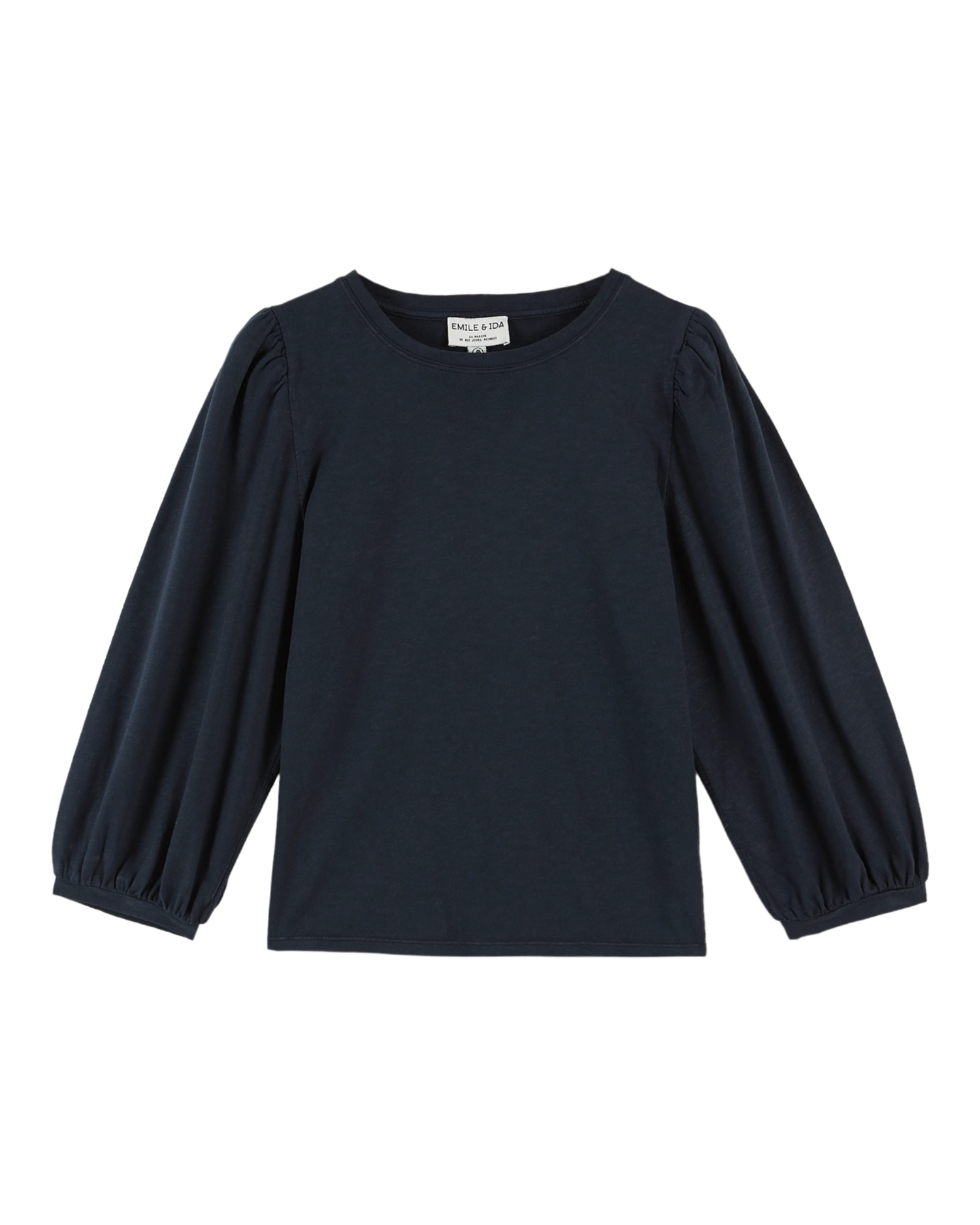 {"id":9150272569673,"title":"Organic cotton balloon sleeve t-shirt in blueish black","handle":"t-shirt-coton-bio-flamme-noir-ida-ayda_corbeau","description":"\u003cp\u003e T-shirt in blue-black slub organic cotton jersey.\u003cbr\u003e Another t-shirt made from a thick material with a brushed interior for added softness and warmth. \u003cbr\u003eStraight cut, long puffed sleeves, thanks to the gathers at the sleeve caps, tightened at the wrists. A ribbed band finishes the bottom of the sleeves and the slightly scooped neckline.\u003c\/p\u003e\n\n\u003cp\u003e \u003cb\u003eSize advice:\u003c\/b\u003e we advise you to take your usual size.\u003cbr\u003e\u003cbr\u003e Measurements for a size S:\u003cbr data-mce-fragment=\"1\"\u003e Length: 58 cm\u003cbr data-mce-fragment=\"1\"\u003e Chest width: 44 cm\u003cbr\u003e\u003c\/p\u003e","published_at":"2025-10-31T16:44:19+01:00","created_at":"2024-06-27T11:44:21+02:00","vendor":"Junius Texteis","type":"T-shirts","tags":["AW24","AW24-WOMAN","AW25","AW25-WOMAN","CORBEAU","FEMME","FM-IDA-AYDA-CORBEAU","IDA-AYDA-CORBEAU","IDA-AYDA_CORBEAU","permanent","TEE SHIRTS","tops-tee-shirts","woman"],"price":7500,"price_min":7500,"price_max":7500,"available":true,"price_varies":false,"compare_at_price":null,"compare_at_price_min":0,"compare_at_price_max":0,"compare_at_price_varies":false,"variants":[{"id":50293364556105,"title":"XXS","option1":"XXS","option2":null,"option3":null,"sku":"IDA-AYDA-CORBEAU-XXS#247576","requires_shipping":true,"taxable":true,"featured_image":null,"available":true,"name":"Organic cotton balloon sleeve t-shirt in blueish black - XXS","public_title":"XXS","options":["XXS"],"price":7500,"weight":150,"compare_at_price":null,"inventory_management":"shopify","barcode":"3664547566824","requires_selling_plan":false,"selling_plan_allocations":[]},{"id":50293364588873,"title":"XS","option1":"XS","option2":null,"option3":null,"sku":"IDA-AYDA-CORBEAU-XS#247577","requires_shipping":true,"taxable":true,"featured_image":null,"available":false,"name":"Organic cotton balloon sleeve t-shirt in blueish black - XS","public_title":"XS","options":["XS"],"price":7500,"weight":150,"compare_at_price":null,"inventory_management":"shopify","barcode":"3664547566831","requires_selling_plan":false,"selling_plan_allocations":[]},{"id":50293364621641,"title":"S","option1":"S","option2":null,"option3":null,"sku":"IDA-AYDA-CORBEAU-S#247578","requires_shipping":true,"taxable":true,"featured_image":null,"available":false,"name":"Organic cotton balloon sleeve t-shirt in blueish black - S","public_title":"S","options":["S"],"price":7500,"weight":150,"compare_at_price":null,"inventory_management":"shopify","barcode":"3664547566848","requires_selling_plan":false,"selling_plan_allocations":[]},{"id":50293364654409,"title":"M","option1":"M","option2":null,"option3":null,"sku":"IDA-AYDA-CORBEAU-M#247579","requires_shipping":true,"taxable":true,"featured_image":null,"available":false,"name":"Organic cotton balloon sleeve t-shirt in blueish black - M","public_title":"M","options":["M"],"price":7500,"weight":150,"compare_at_price":null,"inventory_management":"shopify","barcode":"3664547566855","requires_selling_plan":false,"selling_plan_allocations":[]},{"id":50293364687177,"title":"L","option1":"L","option2":null,"option3":null,"sku":"IDA-AYDA-CORBEAU-L#247580","requires_shipping":true,"taxable":true,"featured_image":null,"available":false,"name":"Organic cotton balloon sleeve t-shirt in blueish black - L","public_title":"L","options":["L"],"price":7500,"weight":150,"compare_at_price":null,"inventory_management":"shopify","barcode":"3664547566862","requires_selling_plan":false,"selling_plan_allocations":[]},{"id":50293364719945,"title":"XL","option1":"XL","option2":null,"option3":null,"sku":"IDA-AYDA-CORBEAU-XL#247581","requires_shipping":true,"taxable":true,"featured_image":null,"available":true,"name":"Organic cotton balloon sleeve t-shirt in blueish black - XL","public_title":"XL","options":["XL"],"price":7500,"weight":150,"compare_at_price":null,"inventory_management":"shopify","barcode":"3664547566879","requires_selling_plan":false,"selling_plan_allocations":[]}],"images":["\/\/www.emileetida.com\/cdn\/shop\/files\/ida_ayda_corbeau_f35463ef-a984-4107-a19d-da641b586cc2.png?v=1727799753","\/\/www.emileetida.com\/cdn\/shop\/files\/73_052bae45-ed58-4419-bfde-dea149fe9144.jpg?v=1720778881","\/\/www.emileetida.com\/cdn\/shop\/files\/74_7d0400f2-2f0a-4055-a0bc-e92525527f59.jpg?v=1720778881"],"featured_image":"\/\/www.emileetida.com\/cdn\/shop\/files\/ida_ayda_corbeau_f35463ef-a984-4107-a19d-da641b586cc2.png?v=1727799753","options":["Size"],"media":[{"alt":null,"id":49050428211529,"position":1,"preview_image":{"aspect_ratio":0.8,"height":2500,"width":2000,"src":"\/\/www.emileetida.com\/cdn\/shop\/files\/ida_ayda_corbeau_f35463ef-a984-4107-a19d-da641b586cc2.png?v=1727799753"},"aspect_ratio":0.8,"height":2500,"media_type":"image","src":"\/\/www.emileetida.com\/cdn\/shop\/files\/ida_ayda_corbeau_f35463ef-a984-4107-a19d-da641b586cc2.png?v=1727799753","width":2000},{"alt":null,"id":48128493388105,"position":2,"preview_image":{"aspect_ratio":0.8,"height":2500,"width":2000,"src":"\/\/www.emileetida.com\/cdn\/shop\/files\/73_052bae45-ed58-4419-bfde-dea149fe9144.jpg?v=1720778881"},"aspect_ratio":0.8,"height":2500,"media_type":"image","src":"\/\/www.emileetida.com\/cdn\/shop\/files\/73_052bae45-ed58-4419-bfde-dea149fe9144.jpg?v=1720778881","width":2000},{"alt":null,"id":48128493453641,"position":3,"preview_image":{"aspect_ratio":0.8,"height":2500,"width":2000,"src":"\/\/www.emileetida.com\/cdn\/shop\/files\/74_7d0400f2-2f0a-4055-a0bc-e92525527f59.jpg?v=1720778881"},"aspect_ratio":0.8,"height":2500,"media_type":"image","src":"\/\/www.emileetida.com\/cdn\/shop\/files\/74_7d0400f2-2f0a-4055-a0bc-e92525527f59.jpg?v=1720778881","width":2000}],"requires_selling_plan":false,"selling_plan_groups":[],"content":"\u003cp\u003e T-shirt in blue-black slub organic cotton jersey.\u003cbr\u003e Another t-