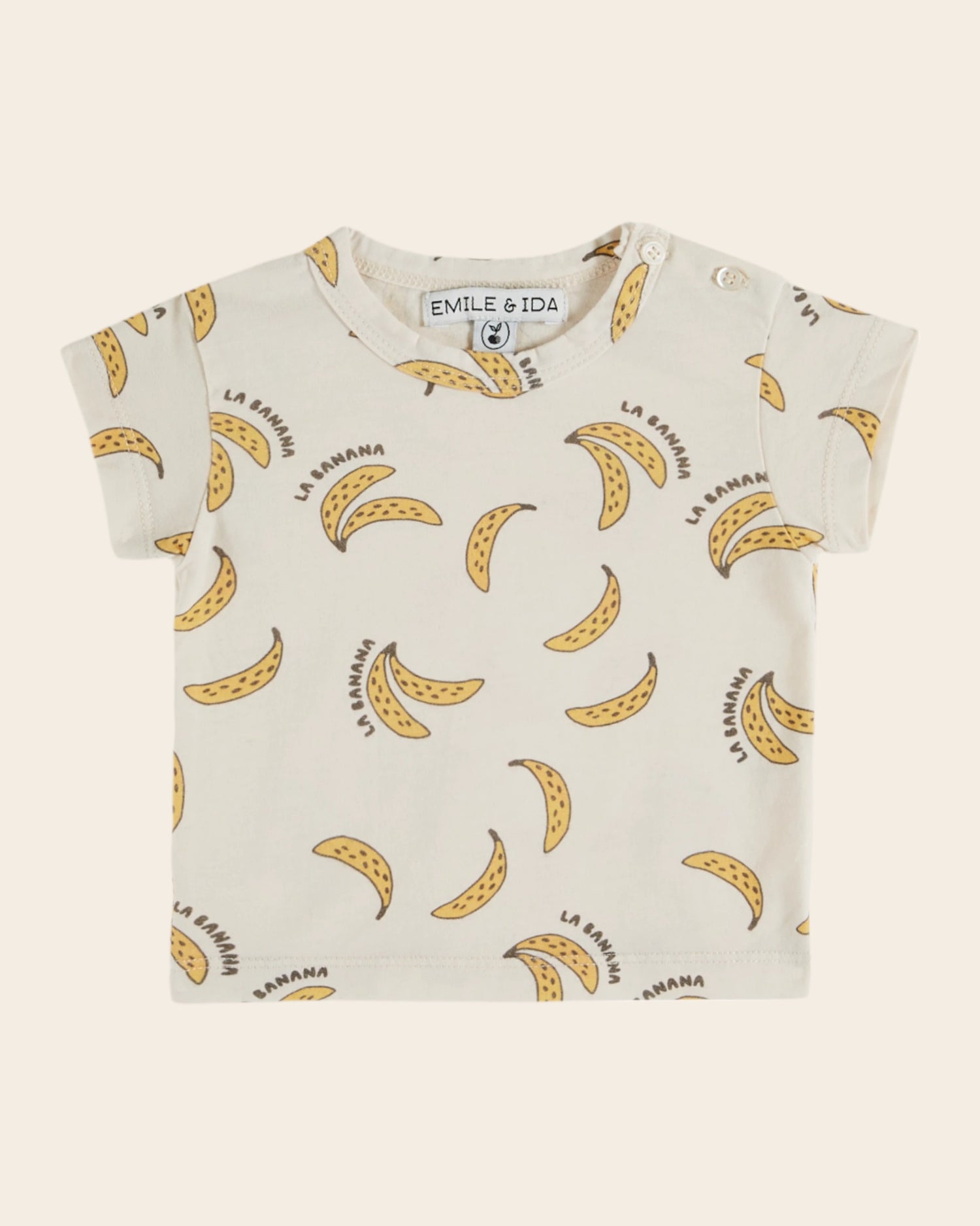 T-shirt in cream organic cotton jersey printed all-over with small ripe bananas.