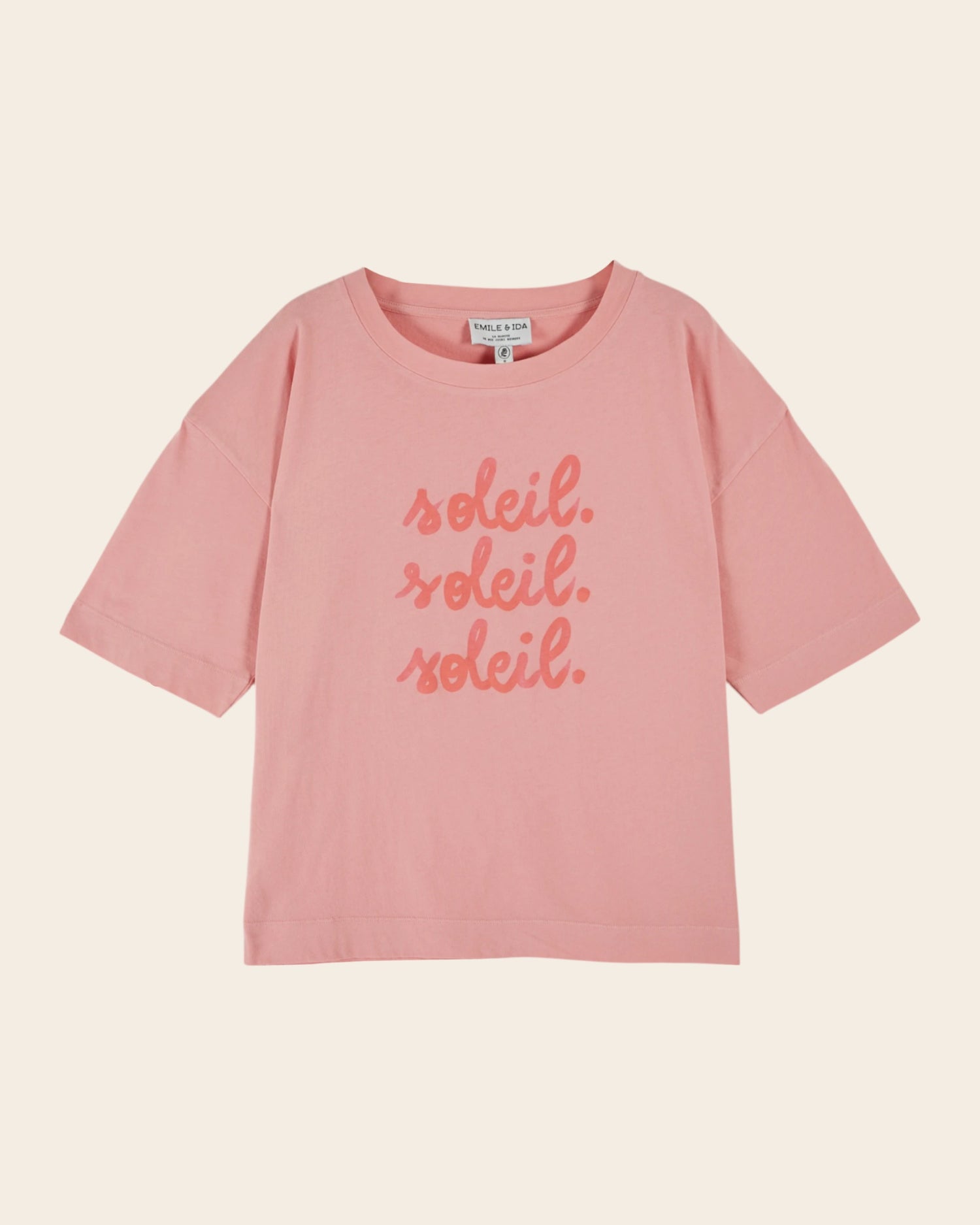 {"id":9691706065225,"title":"T-shirt - \"Soleil Soleil Soleil\" rose","handle":"tee-shirt-imprime-rose-indien","description":"\u003cp\u003eTee-shirt à manches courtes en jersey de coton bio rose indien imprimé à l'avant \"Soleil. Soleil. Soleil.\" et au dos des illustrations qui inspirent les vacances \"sous le soleil\". \u003cbr\u003e- Matière d'une grande douceur \u003cbr\u003e- Coupe over-size \u003cbr\u003e- Encolure ronde \u003cbr\u003e- Finitions en bord-côtes autour de l'encolure \u003cbr\u003e- Finitions ourlées et surpiquées au bas des manches et de la base\u003c\/p\u003e","published_at":"2026-02-17T14:14:52+01:00","created_at":"2025-06-05T10:27:04+02:00","vendor":"Only You","type":"Tops \u0026 T-shirts","tags":["badge: coton bio","coton bio","FEMME","FM-IDA-DAISY2-ROSE INDIEN","FM-SPLIT_MASTER_COLOR","SS26","SS26-WOMAN","TEE SHIRTS","tops-tee-shirts","woman"],"price":6500,"price_min":6500,"price_max":6500,"available":true,"price_varies":false,"compare_at_price":null,"compare_at_price_min":0,"compare_at_price_max":0,"compare_at_price_varies":false,"variants":[{"id":52434170577225,"title":"XXS","option1":"XXS","option2":null,"option3":null,"sku":"IDA-DAISY2-ROSE-INDIEN-XXS#285894","requires_shipping":true,"taxable":true,"featured_image":null,"available":true,"name":"T-shirt - \"Soleil Soleil Soleil\" rose - XXS","public_title":"XXS","options":["XXS"],"price":6500,"weight":130,"compare_at_price":null,"inventory_management":"shopify","barcode":"3664547682555","requires_selling_plan":false,"selling_plan_allocations":[]},{"id":52434170609993,"title":"XS","option1":"XS","option2":null,"option3":null,"sku":"IDA-DAISY2-ROSE-INDIEN-XS#285895","requires_shipping":true,"taxable":true,"featured_image":null,"available":true,"name":"T-shirt - \"Soleil Soleil Soleil\" rose - XS","public_title":"XS","options":["XS"],"price":6500,"weight":130,"compare_at_price":null,"inventory_management":"shopify","barcode":"3664547682562","requires_selling_plan":false,"selling_plan_allocations":[]},{"id":52434170642761,"title":"S","option1":"S","option2":null,"option3":null,"sku":"IDA-DAISY2-ROSE-INDIEN-S#285896","requires_shipping":true,"taxable":true,"featured_image":null,"available":true,"name":"T-shirt - \"Soleil Soleil Soleil\" rose - S","public_title":"S","options":["S"],"price":6500,"weight":130,"compare_at_price":null,"inventory_management":"shopify","barcode":"3664547682579","requires_selling_plan":false,"selling_plan_allocations":[]},{"id":52434170675529,"title":"M","option1":"M","option2":null,"option3":null,"sku":"IDA-DAISY2-ROSE-INDIEN-M#285897","requires_shipping":true,"taxable":true,"featured_image":null,"available":true,"name":"T-shirt - \"Soleil Soleil Soleil\" rose - M","public_title":"M","options":["M"],"price":6500,"weight":130,"compare_at_price":null,"inventory_management":"shopify","barcode":"3664547682586","requires_selling_plan":false,"selling_plan_allocations":[]},{"id":52434170708297,"title":"L","option1":"L","option2":null,"option3":null,"sku":"IDA-DAISY2-ROSE-INDIEN-L#285898","requires_shipping":true,"taxable":true,"featured_image":null,"available":true,"name":"T-shirt - \"Soleil Soleil Soleil\" rose - L","public_title":"L","options":["L"],"price":6500,"weight":130,"compare_at_price":null,"inventory_management":"shopify","barcode":"3664547682593","requires_selling_plan":false,"selling_plan_allocations":[]},{"id":52434170741065,"title":"XL","option1":"XL","option2":null,"option3":null,"sku":"IDA-DAISY2-ROSE-INDIEN-XL#285899","requires_shipping":true,"taxable":true,"featured_image":null,"available":true,"name":"T-shirt - \"Soleil Soleil Soleil\" rose - XL","public_title":"XL","options":["XL"],"price":6500,"weight":130,"compare_at_price":null,"inventory_management":"shopify","barcode":"3664547682609","requires_selling_plan":false,"selling_plan_allocations":[]}],"images":["\/\/www.emileetida.com\/cdn\/shop\/files\/IDA-DAISY2-rose-indien-01.jpg?v=1767882900","\/\/www.emileetida.com\/cdn\/shop\/files\/187_50d5c662-cbcc-42bf-9526-78ff26c0d54a.jpg?v=1769186080","\/\/www.emileetida.com\/cdn\/shop\/files\/IDA-DAISY2-rose-indien-02.jpg?v=1769186080","\/\/www.emileetida.com\/cdn\/shop\/files\/IDA-DAISY2-rose-indien-03.jpg?v=1769186080","\/\/www.emileetida.com\/cdn\/shop\/files\/190_24632eb3-55a1-494c-9ab7-22384dc53083.jpg?v=1769186080","\/\/www.emileetida.com\/cdn\/shop\/files\/IDA-DAISY2-rose-indien-04.jpg?v=1769186080","\/\/www.emileetida.com\/cdn\/shop\/files\/IDA-DAISY2-rose-indien-05.jpg?v=1769186080"],"featured_image":"\/\/www.emileetida.com\/cdn\/shop\/files\/IDA-DAISY2-rose-indien-01.jpg?v=1767882900","options":["Taille"],"media":[{"alt":null,"id":55465326510409,"position":1,"preview_image":{"aspect_ratio":0.8,"height":2500,"width":2000,"src":"\/\/www.emileetida.com\/cdn\/shop\/files\/IDA-DAISY2-rose-indien-01.jpg?v=1767882900"},"aspect_ratio":0.8,"height":2500,"media_type":"image","src":"\/\/www.emileetida.com\/cdn\/shop\/files\/IDA-DAISY2-rose-indien-01.jpg?v=1767882900","width":2000},{"alt":null,"id":55834565542217,"position":2,"preview_image":{"aspect_ratio":0.8,"height":2500,"width":2000,"src":"\/\/www.emileetida.com\/cdn\/shop\/files\/187_50d5c662-cbcc-42bf-9526-78ff26c0d54a.jpg?v=1769186080"},"aspect_ratio":0.8,"height":2500,"media_type":"image","src":"\/\/www.emileetida.com\/cdn\/shop\/files\/187_50d5c662-cbcc-42bf-9526-78ff26c0d54a.jpg?v=1769186080","width":2000},{"alt":null,"id":55465326543177,"position":3,"preview_image":{"aspect_ratio":0.8,"height":2500,"width":2000,"src":"\/\/www.emileetida.com\/cdn\/shop\/files\/IDA-DAISY2-rose-indien-02.jpg?v=1769186080"},"aspect_ratio":0.8,"height":2500,"media_type":"image","src":"\/\/www.emileetida.com\/cdn\/shop\/files\/IDA-DAISY2-rose-indien-02.jpg?v=1769186080","width":2000},{"alt":null,"id":55465326575945,"position":4,"preview_image":{"aspect_ratio":0.8,"height":2500,"width":2000,"src":"\/\/www.emileetida.com\/cdn\/shop\/files\/IDA-DAISY2-rose-indien-03.jpg?v=1769186080"},"aspect_ratio":0.8,"height":2500,"media_type":"image",
