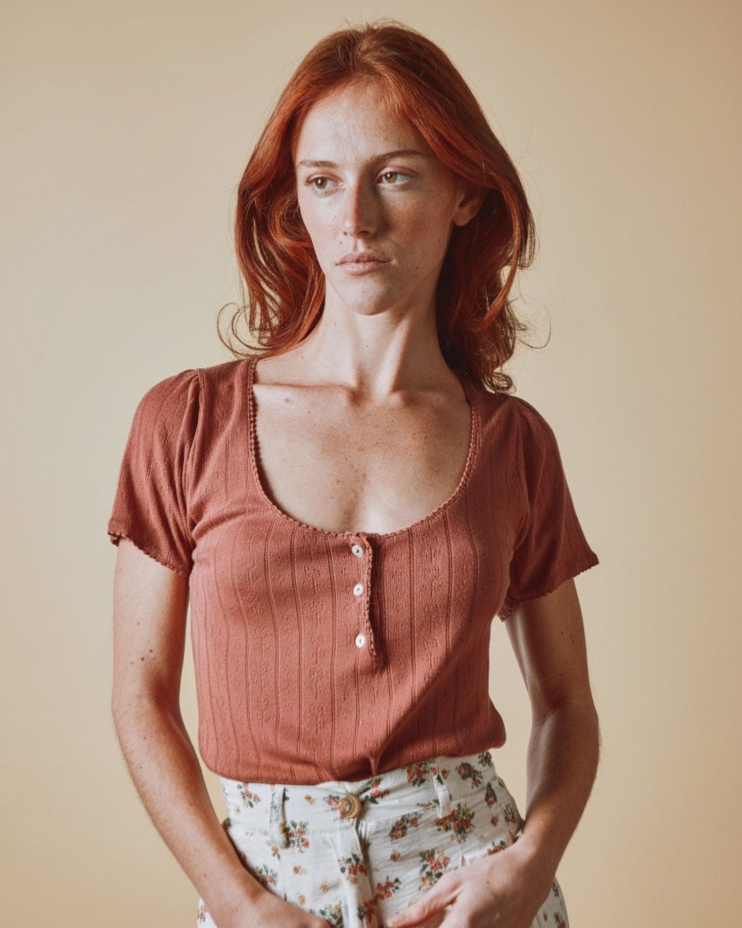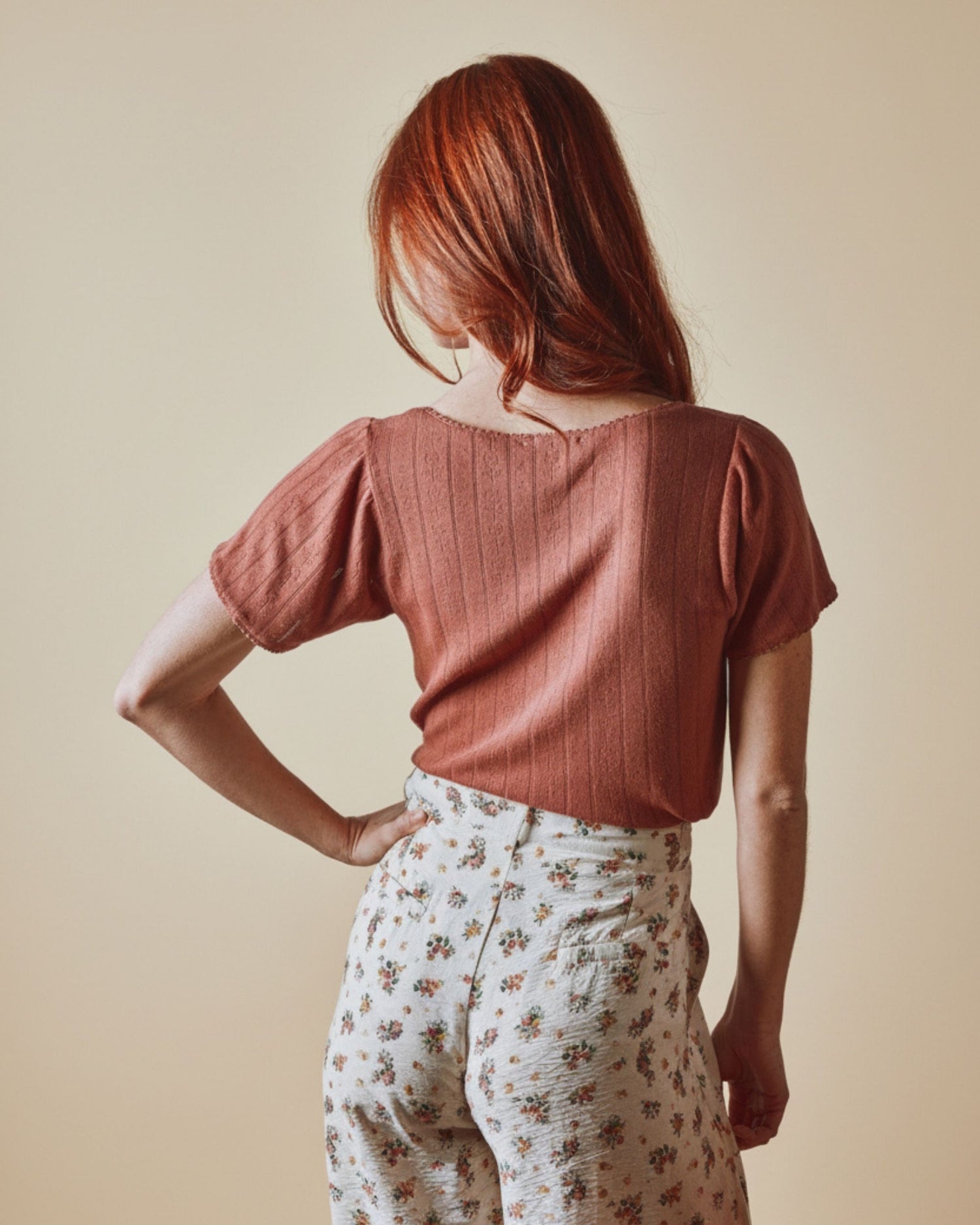 Brown cotton and modal jersey top.
