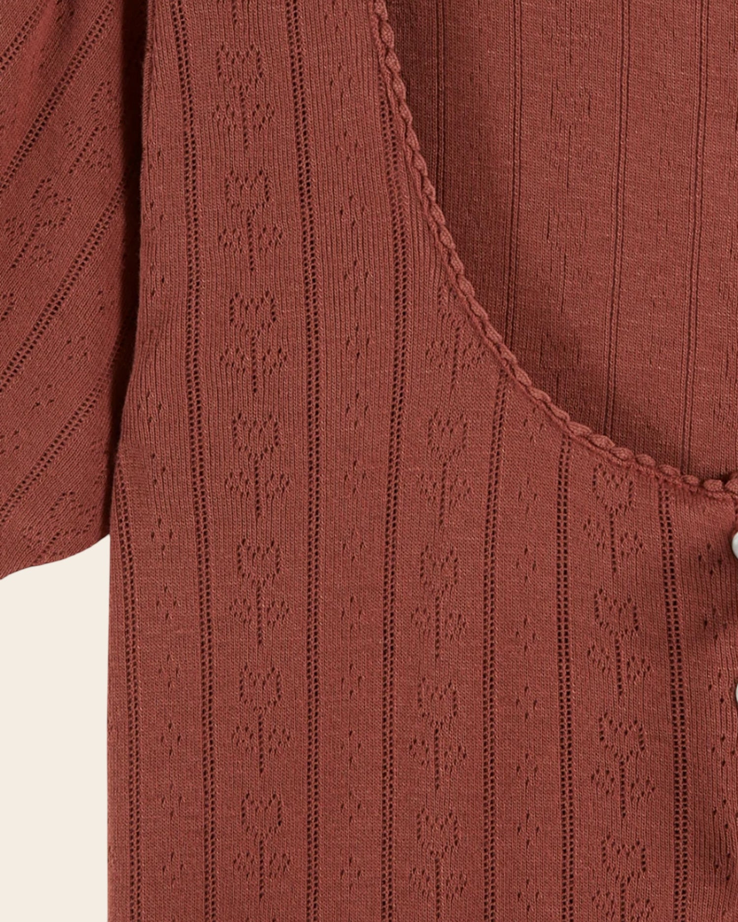 - Pointelle openwork knit features delicate repeating patterns