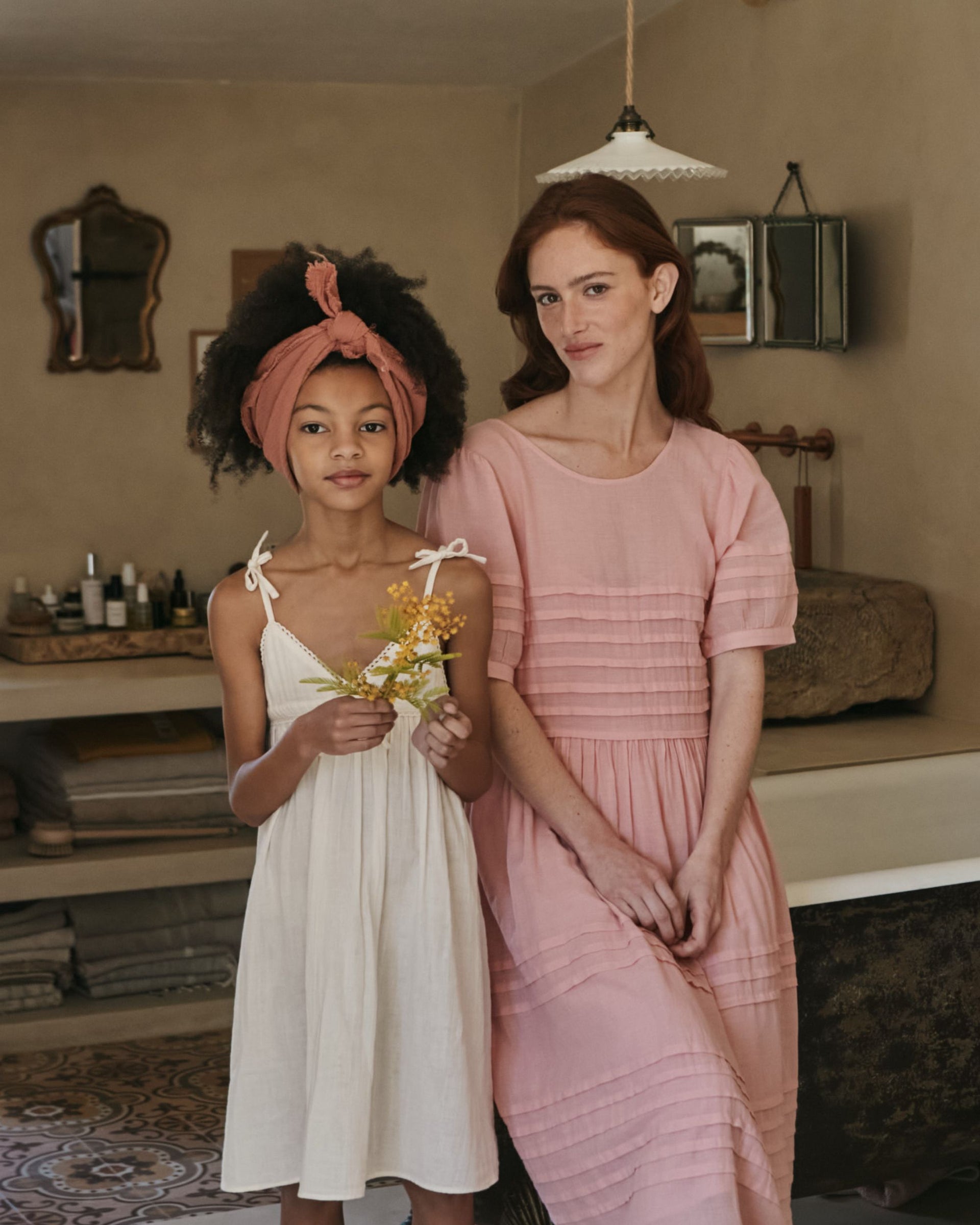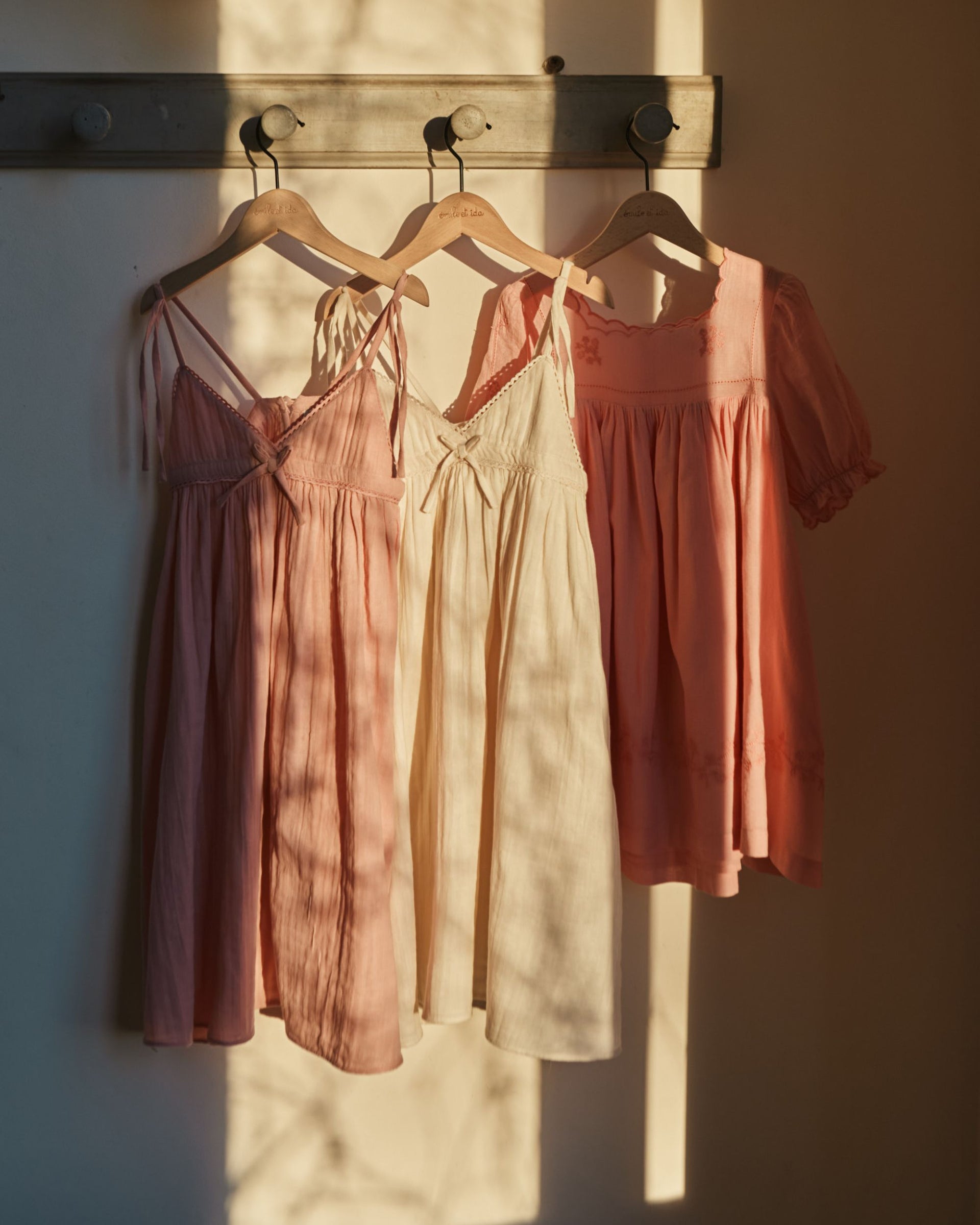 Des robes aux textures et tombés différents, qu'elles soient en double gaze de coton, popeline de coton ou voile de coton.