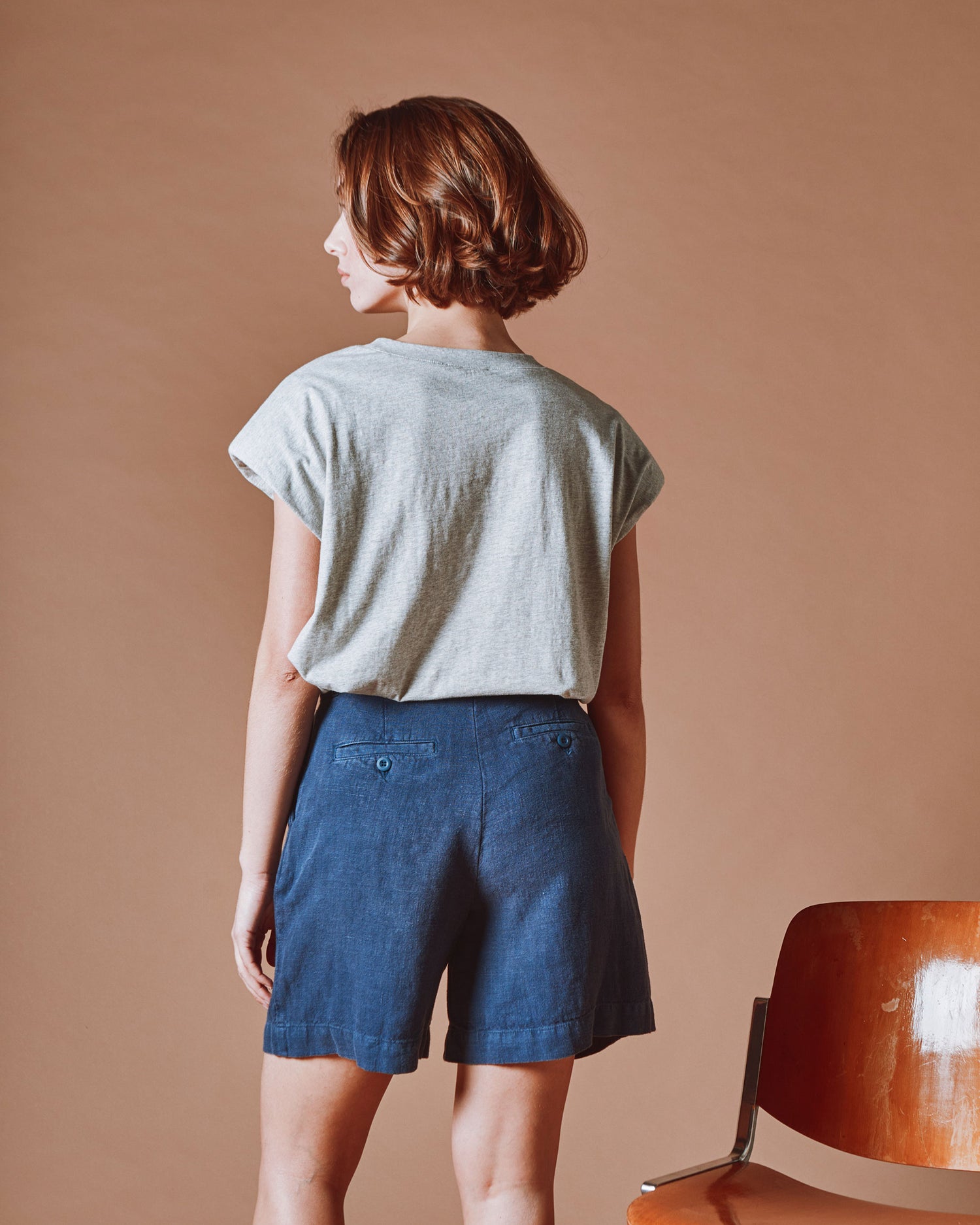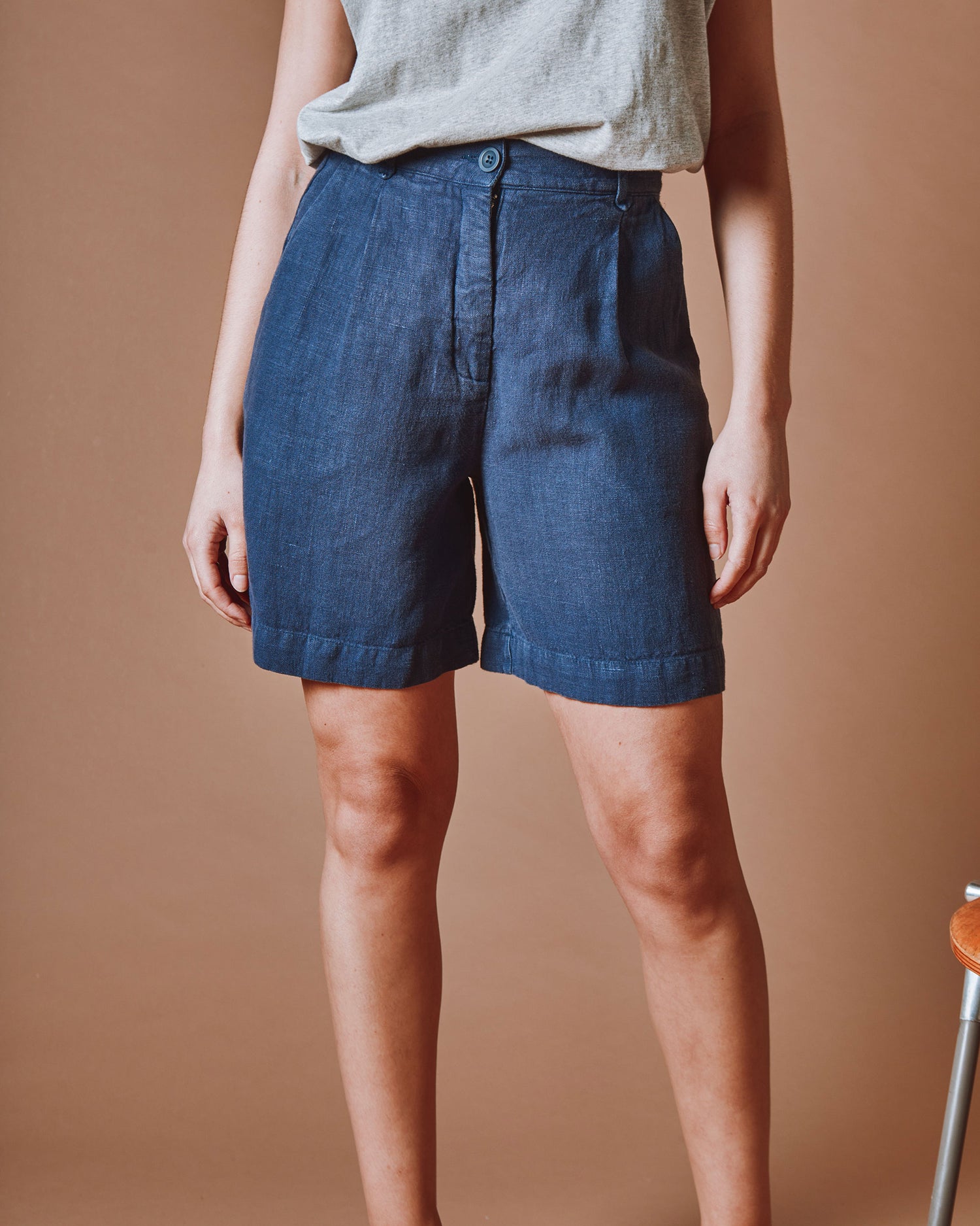 Bermuda en lin bleu marine.