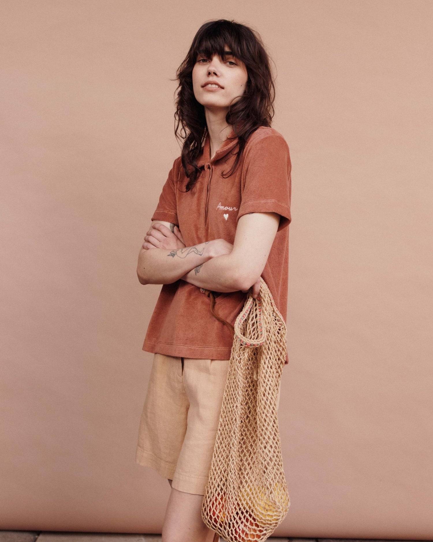 Bermuda en lin beige.