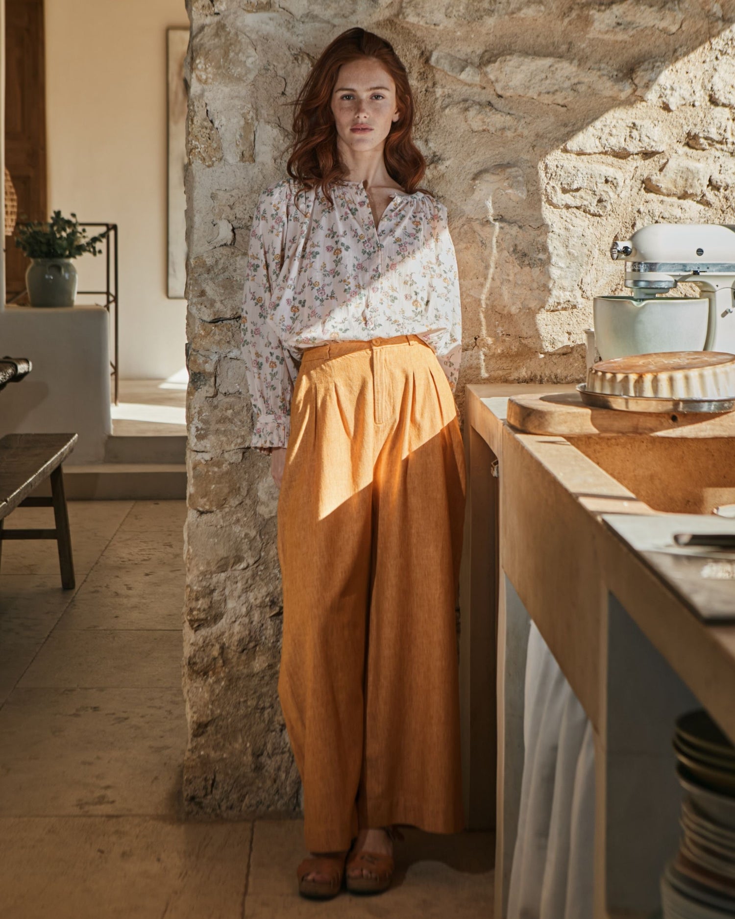 Blouse en coton bio crème rosé, dont l'imprimé fleuri est inspiré d'un vintage. Sa matière est fine et légère.