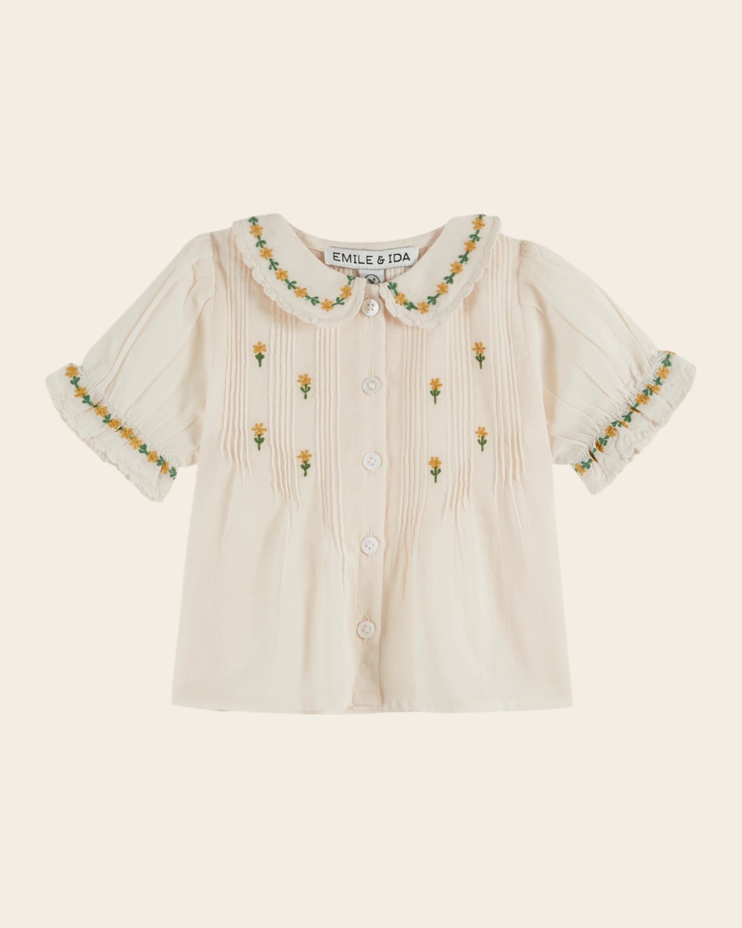 Blouse Fleurs brodées crème