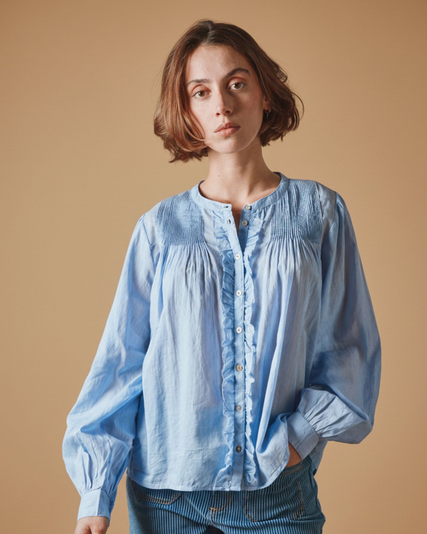 {"id":9685198242121,"title":"Blouse - Plissé bleu","handle":"blouse-coloree-avec-plis-ciel","description":"\u003cp\u003eBlouse en voile de coton bio bleu très doux et souple.\n\u003cbr\u003e- Coupe ample\n\u003cbr\u003e- Légère transparence\n\u003cbr\u003e- Col rond\n\u003cbr\u003e- Plis couchés sur la poitrine créant de l'ampleur\n\u003cbr\u003e- Manches longues boutonnées\n\u003cbr\u003e- Ouverture boutonnée sur toute la hauteur\u003c\/p\u003e","published_at":"2026-02-04T07:31:06+01:00","created_at":"2025-05-30T15:25:22+02:00","vendor":"Bk Fashion","type":"Blouses \u0026 Chemises","tags":["badge: coton bio","BLOUSES","blouses-chemises","coton bio","FEMME","FM-IDA-DOLORES-CIEL","FM-SPLIT_MASTER_COLOR","new in","SS26","SS26-WOMAN","woman"],"price":10500,"price_min":10500,"price_max":10500,"available":true,"price_varies":false,"compare_at_price":null,"compare_at_price_min":0,"compare_at_price_max":0,"compare_at_price_varies":false,"variants":[{"id":52402613190985,"title":"XXS","option1":"XXS","option2":null,"option3":null,"sku":"IDA-DOLORES-CIEL-XXS#282575","requires_shipping":true,"taxable":true,"featured_image":null,"available":true,"name":"Blouse - Plissé bleu - XXS","public_title":"XXS","options":["XXS"],"price":10500,"weight":145,"compare_at_price":null,"inventory_management":"shopify","barcode":"3664547688427","requires_selling_plan":false,"selling_plan_allocations":[]},{"id":52417910571337,"title":"XS","option1":"XS","option2":null,"option3":null,"sku":"IDA-DOLORES-CIEL-XS#283531","requires_shipping":true,"taxable":true,"featured_image":null,"available":true,"name":"Blouse - Plissé bleu - XS","public_title":"XS","options":["XS"],"price":10500,"weight":1000,"compare_at_price":null,"inventory_management":"shopify","barcode":"3664547688441","requires_selling_plan":false,"selling_plan_allocations":[]},{"id":52417910604105,"title":"S","option1":"S","option2":null,"option3":null,"sku":"IDA-DOLORES-CIEL-S#283535","requires_shipping":true,"taxable":true,"featured_image":null,"available":true,"name":"Blouse - Plissé bleu - S","public_title":"S","options":["S"],"price":10500,"weight":1000,"compare_at_price":null,"inventory_management":"shopify","barcode":"3664547688489","requires_selling_plan":false,"selling_plan_allocations":[]},{"id":52417910636873,"title":"M","option1":"M","option2":null,"option3":null,"sku":"IDA-DOLORES-CIEL-M#283539","requires_shipping":true,"taxable":true,"featured_image":null,"available":true,"name":"Blouse - Plissé bleu - M","public_title":"M","options":["M"],"price":10500,"weight":1000,"compare_at_price":null,"inventory_management":"shopify","barcode":"3664547688526","requires_selling_plan":false,"selling_plan_allocations":[]},{"id":52417910669641,"title":"L","option1":"L","option2":null,"option3":null,"sku":"IDA-DOLORES-CIEL-L#283543","requires_shipping":true,"taxable":true,"featured_image":null,"available":true,"name":"Blouse - Plissé bleu - L","public_title":"L","options":["L"],"price":10500,"weight":1000,"compare_at_price":null,"inventory_management":"shopify","barcode":"3664547688564","requires_selling_plan":false,"selling_plan_allocations":[]},{"id":52417910702409,"title":"XL","option1":"XL","option2":null,"option3":null,"sku":"IDA-DOLORES-CIEL-XL#283547","requires_shipping":true,"taxable":true,"featured_image":null,"available":false,"name":"Blouse - Plissé bleu - XL","public_title":"XL","options":["XL"],"price":10500,"weight":1000,"compare_at_price":null,"inventory_management":"shopify","barcode":"3664547688601","requires_selling_plan":false,"selling_plan_allocations":[]}],"images":["\/\/www.emileetida.com\/cdn\/shop\/files\/IDA-dolores-ciel_PP_8f0c7399-0c92-4163-9c48-0fc5fab5dee1.jpg?v=1769095901","\/\/www.emileetida.com\/cdn\/shop\/files\/IDA-dolores-ciel-dos_PP.jpg?v=1769095901","\/\/www.emileetida.com\/cdn\/shop\/files\/IDA-DOLORES-ciel-01.jpg?v=1769095901","\/\/www.emileetida.com\/cdn\/shop\/files\/IDA-DOLORES-ciel-02.jpg?v=1769095901"],"featured_image":"\/\/www.emileetida.com\/cdn\/shop\/files\/IDA-dolores-ciel_PP_8f0c7399-0c92-4163-9c48-0fc5fab5dee1.jpg?v=1769095901","options":["Taille"],"media":[{"alt":null,"id":55808937165129,"position":1,"preview_image":{"aspect_ratio":0.8,"height":2500,"width":2000,"src":"\/\/www.emileetida.com\/cdn\/shop\/files\/IDA-dolores-ciel_PP_8f0c7399-0c92-4163-9c48-0fc5fab5dee1.jpg?v=1769095901"},"aspect_ratio":0.8,"height":2500,"media_type":"image","src":"\/\/www.emileetida.com\/cdn\/shop\/files\/IDA-dolores-ciel_PP_8f0c7399-0c92-4163-9c48-0fc5fab5dee1.jpg?v=1769095901","width":2000},{"alt":null,"id":55808698810697,"position":2,"preview_image":{"aspect_ratio":0.8,"height":2500,"width":2000,"src":"\/\/www.emileetida.com\/cdn\/shop\/files\/IDA-dolores-ciel-dos_PP.jpg?v=1769095901"},"aspect_ratio":0.8,"height":2500,"media_type":"image","src":"\/\/www.emileetida.com\/cdn\/shop\/files\/IDA-dolores-ciel-dos_PP.jpg?v=1769095901","width":2000},{"alt":null,"id":55465654485321,"position":3,"preview_image":{"aspect_ratio":0.8,"height":2500,"width":2000,"src":"\/\/www.emileetida.com\/cdn\/shop\/files\/IDA-DOLORES-ciel-01.jpg?v=1769095901"},"aspect_ratio":0.8,"height":2500,"media_type":"image","src":"\/\/www.emileetida.com\/cdn\/shop\/files\/IDA-DOLORES-ciel-01.jpg?v=1769095901","width":2000},{"alt":null,"id":55465654518089,"position":4,"preview_image":{"aspect_ratio":0.8,"height":2500,"width":2000,"src":"\/\/www.emileetida.com\/cdn\/shop\/files\/IDA-DOLORES-ciel-02.jpg?v=1769095901"},"aspect_ratio":0.8,"height":2500,"media_type":"image","src":"\/\/www.emileetida.com\/cdn\/shop\/files\/IDA-DOLORES-ciel-02.jpg?v=1769095901","width":2000}],"requires_selling_plan":false,"selling_plan_groups":[],"content":"\u003cp\u003eBlouse en voile de coton bio bleu très doux et souple.\n\u003cbr\u003e- Coupe ample\n\u003cbr\u003e- Légère transparence\n\u003cbr\u003e- Col rond\n\u003cbr\u003e- Plis couchés sur la poitrine créant de l'ampleur\n\u003cbr\u003e- Manches longues boutonnées\n\u003cbr\u003e- Ouverture boutonnée sur toute l