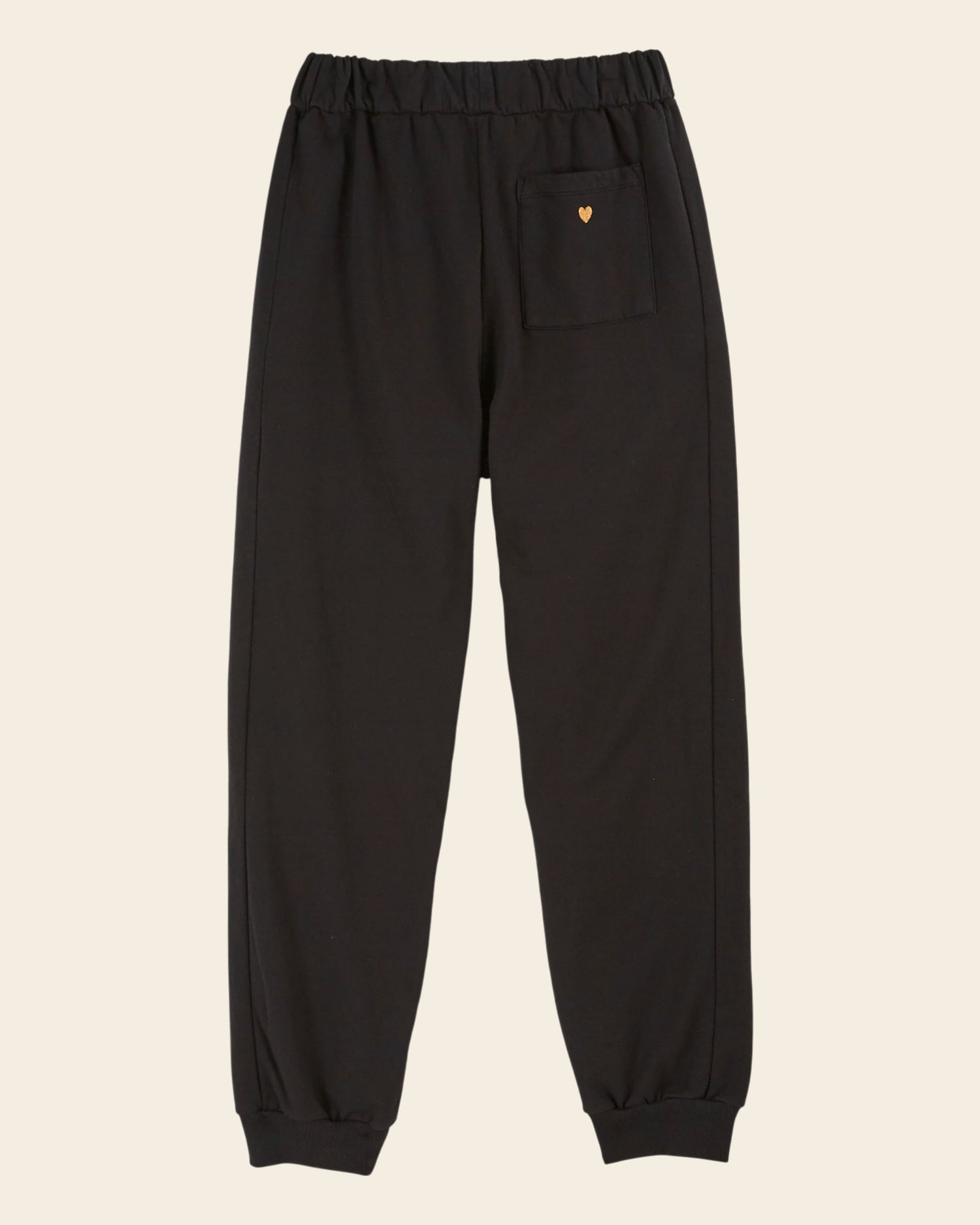 Pantalon de jogging en jersey de coton biologique molletonné et gratté noir.