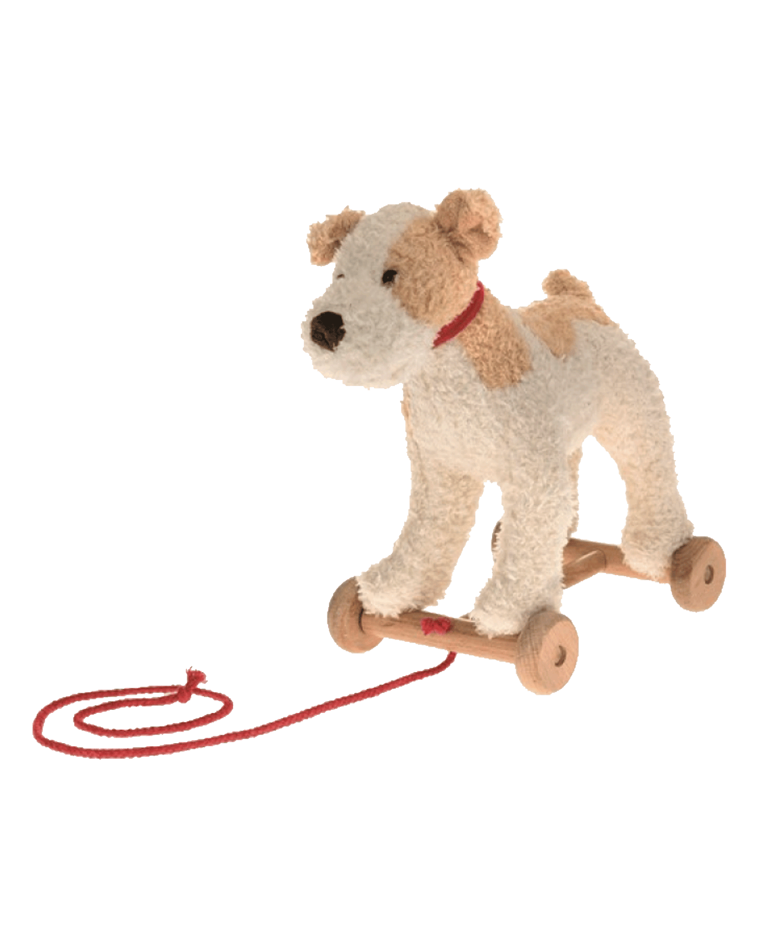 Chien Eliot à tirer Egmont toys. C'est parti pour de grandes promenades avec Eliot sur ses petites roulettes en bois ! Il accompagnera son petit maître partout! Nous aimons son look un brin vintage et son poil tout doux pour les gros câlins après la promenade.