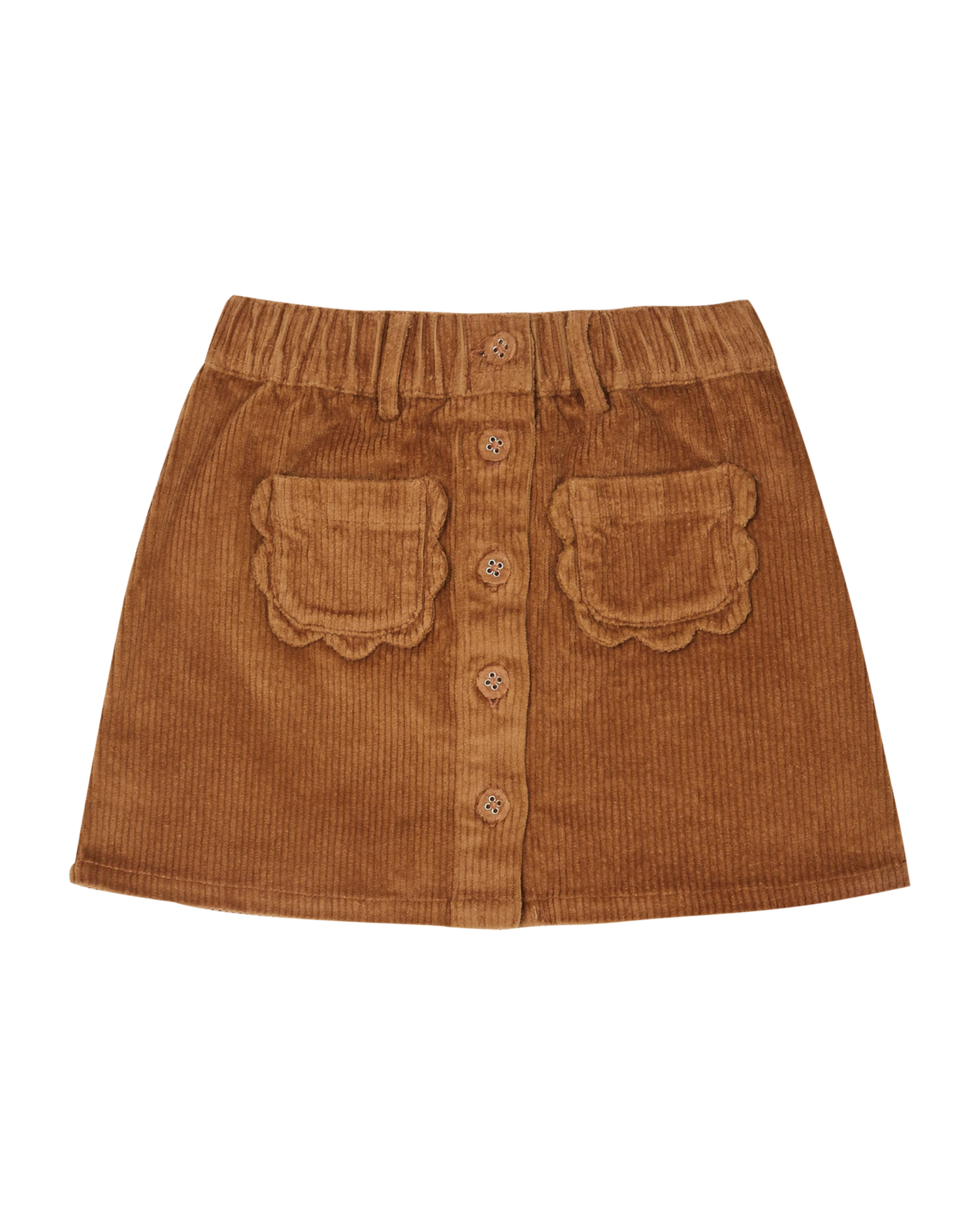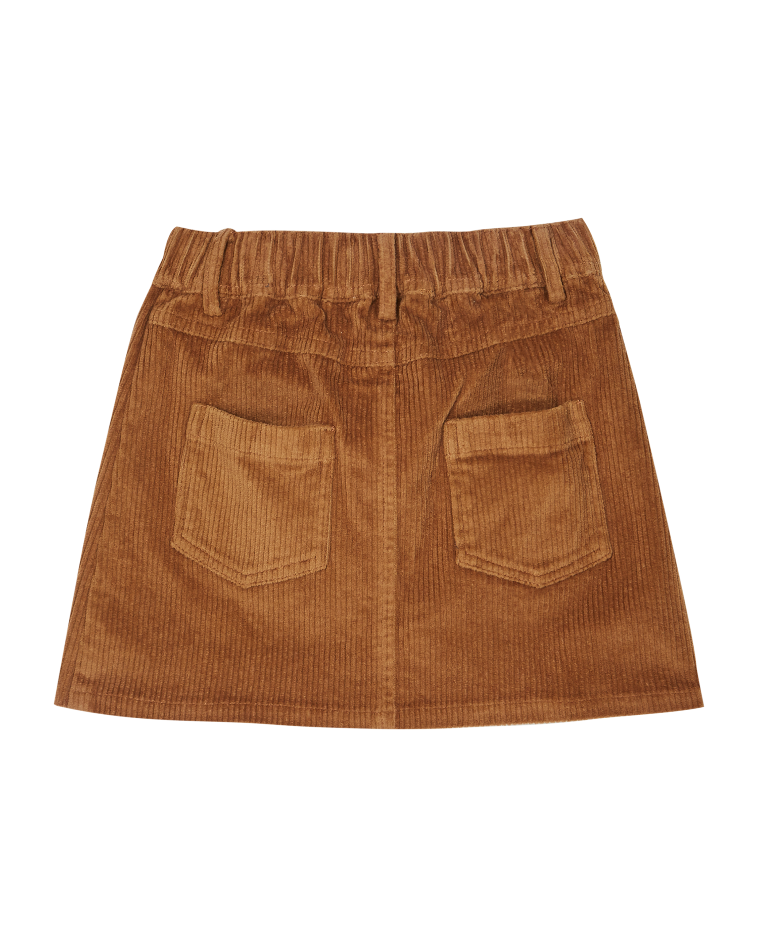 Une bien jolie mini-jupe en velours de coton à grosses côtes, bien épais et tellement doux. Elle est composée d'un empiècement dans le dos et de quatre panneaux montés sur une ceinture élastiquée pour épouser toutes les tailles. Les deux panneaux de devant se ferment avec des boutons recouverts de tissu et accueillent chacun une ravissante poche fleur plaquée. Ceux du dos sont dotés chacun d'une poche plaquée et surpiquée. Plein de combinaisons possibles pour mettre ses mains au chaud ou pour dissimuler ses petits trésors.