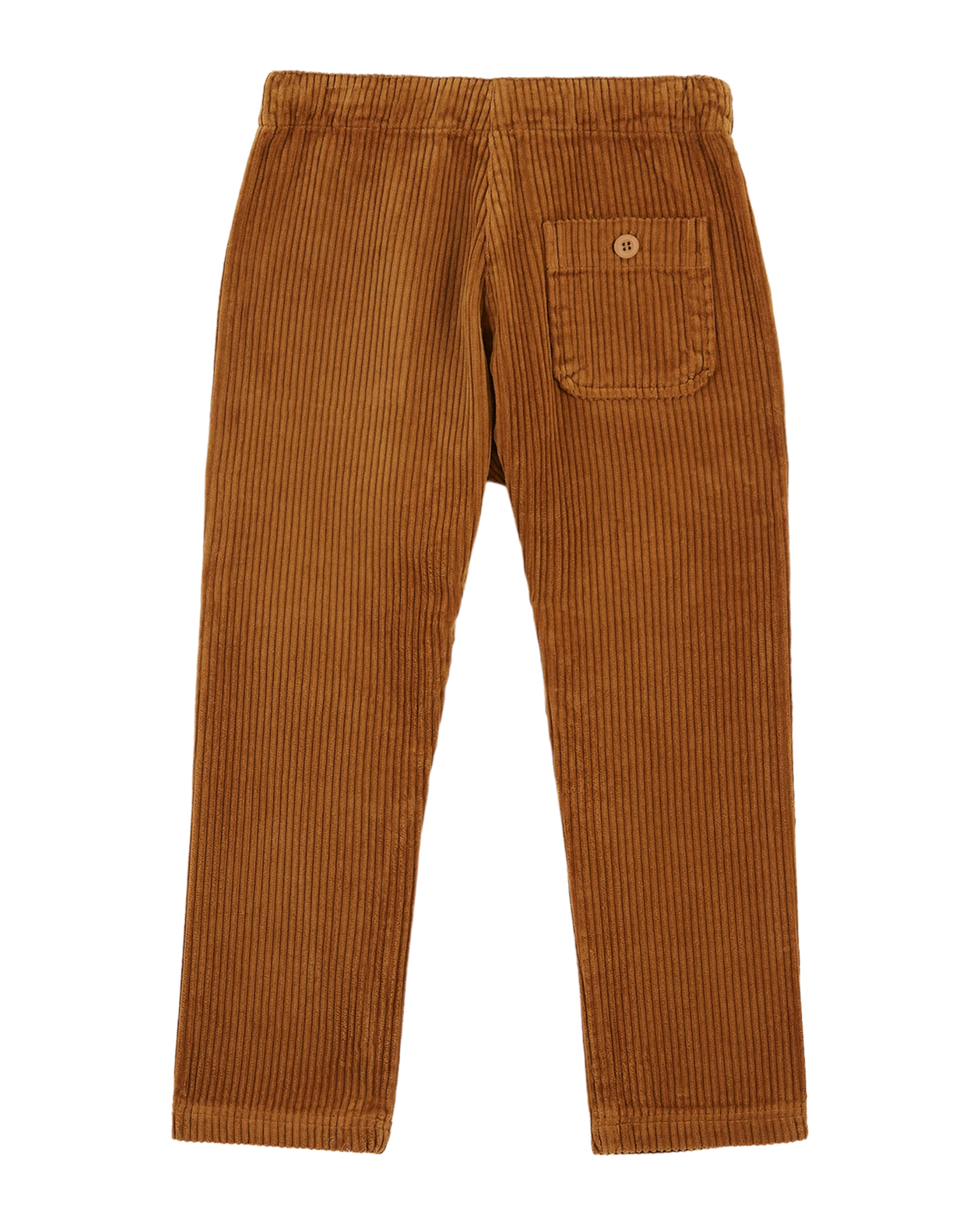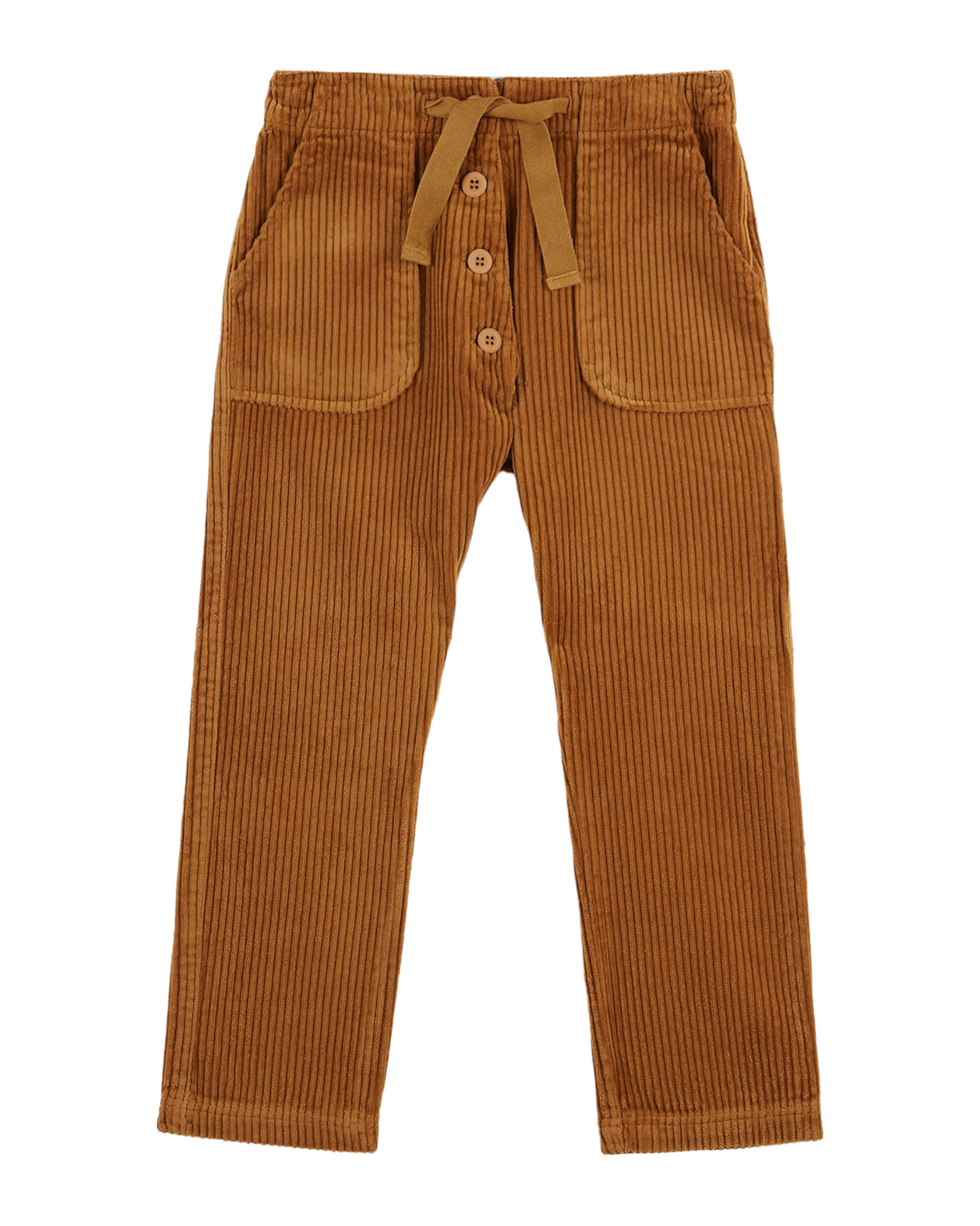Pantalon en velours de coton côtelé marron. Une couleur pour attendre l'été ! La braguette à boutons, la ceinture ajustable grâce à l'élastique à boutons et au lien en sergé de coton font de ce pantalon un basique du vestiaire de Emile & ida. En plus de ses 2 poches plaquées devant il a également 1 poche arrière boutonnée.