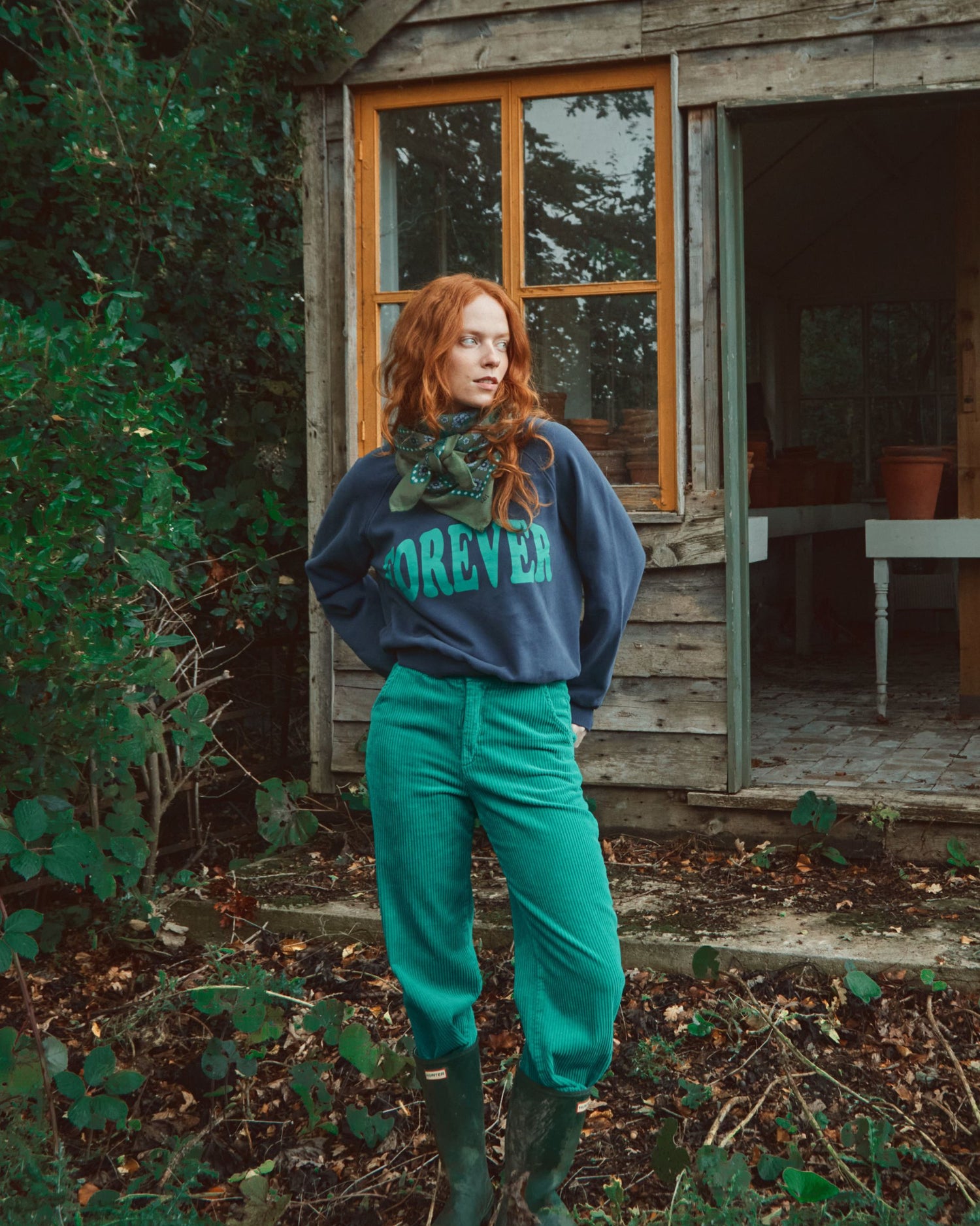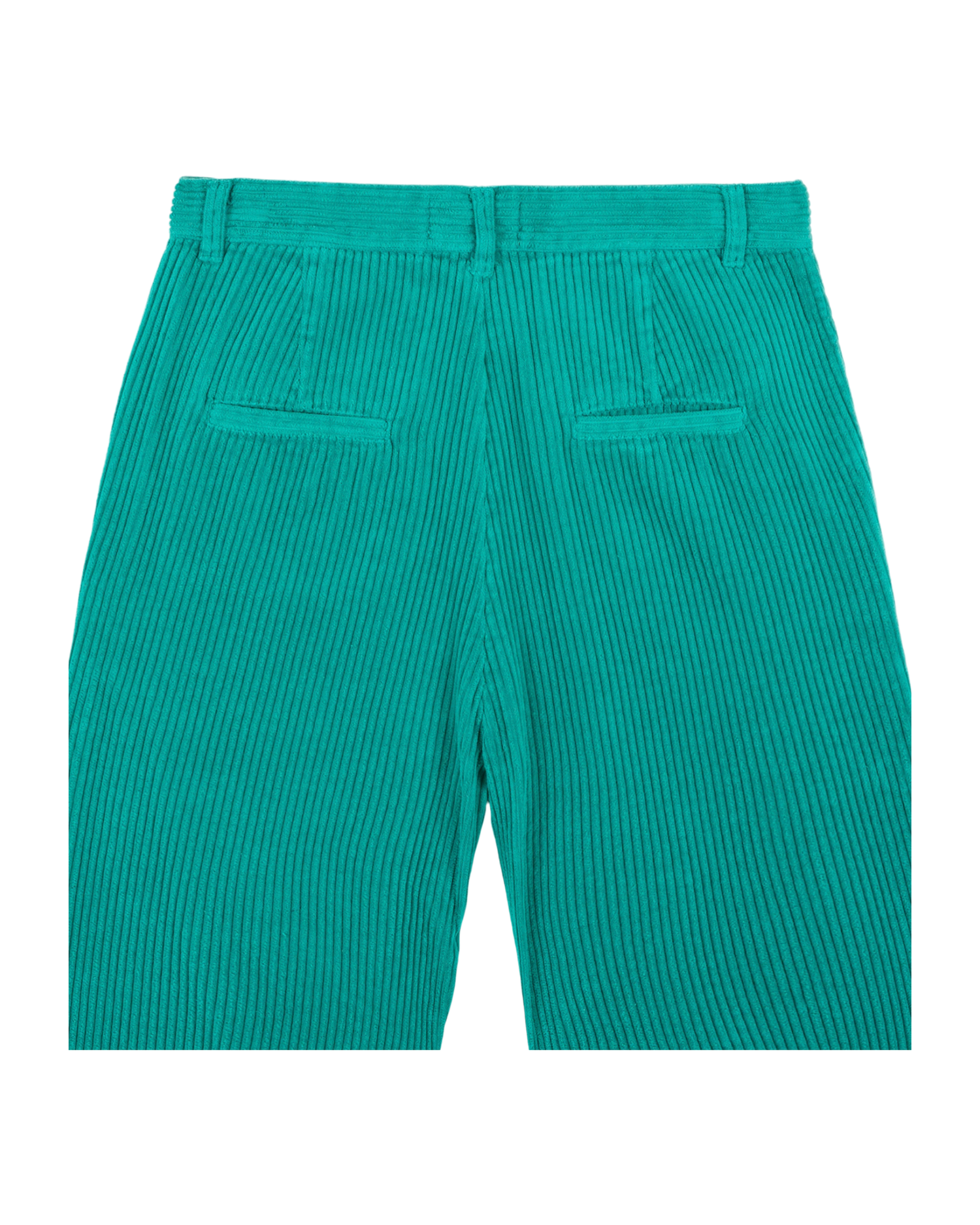 Pantalon en velours de coton vert menthol. On aime la coupe wide qui nous ramène dans les années 70 et l'épais velours à grosses côtes qui nous enveloppe de chaleur de la taille aux chevilles. Le pantalon est monté sur une ceinture à passants et fermé par une fermeture à glissière en métal. Deux poches italiennes avec une découpe qui apporte le chic à la française et deux poches raglan derrière.