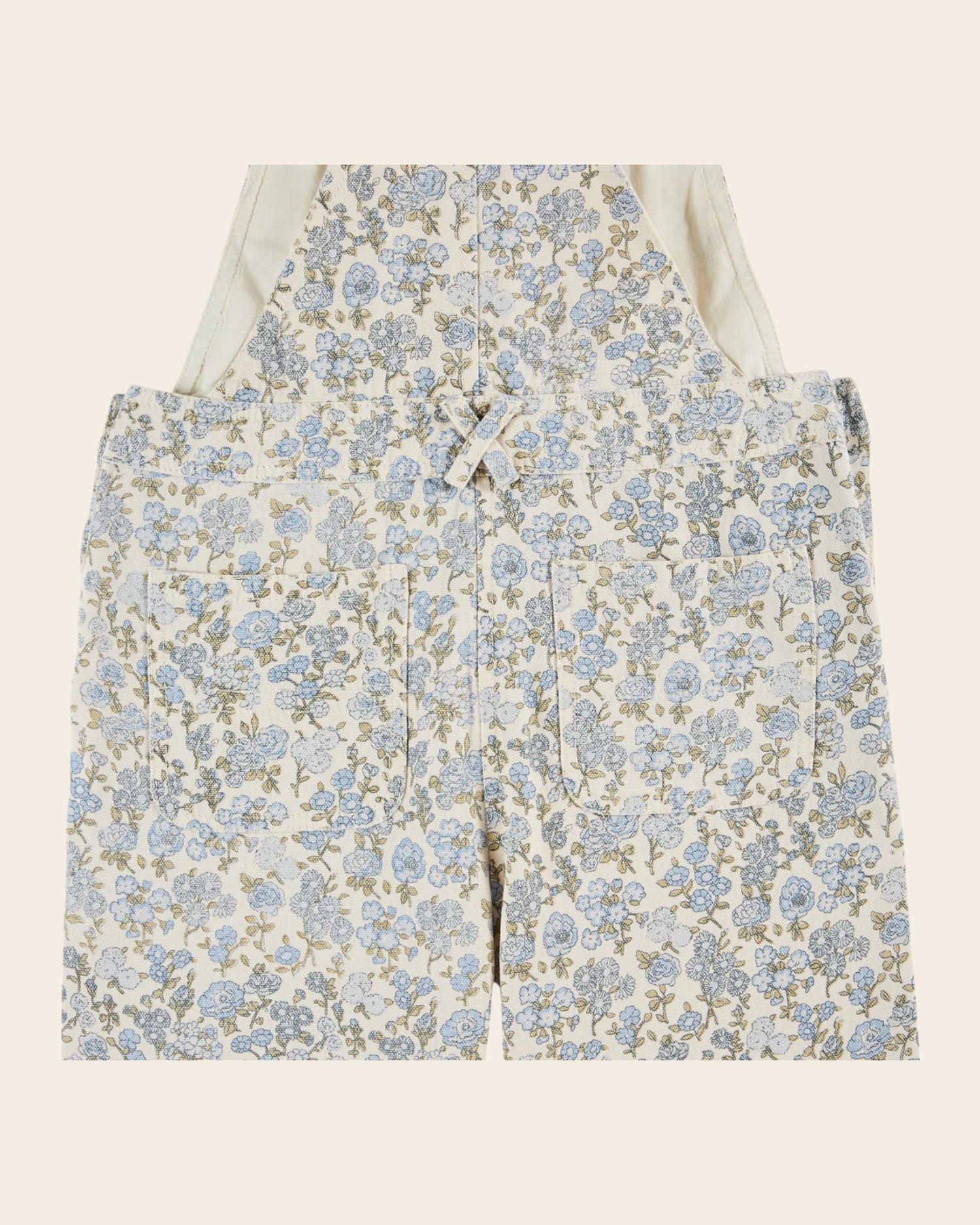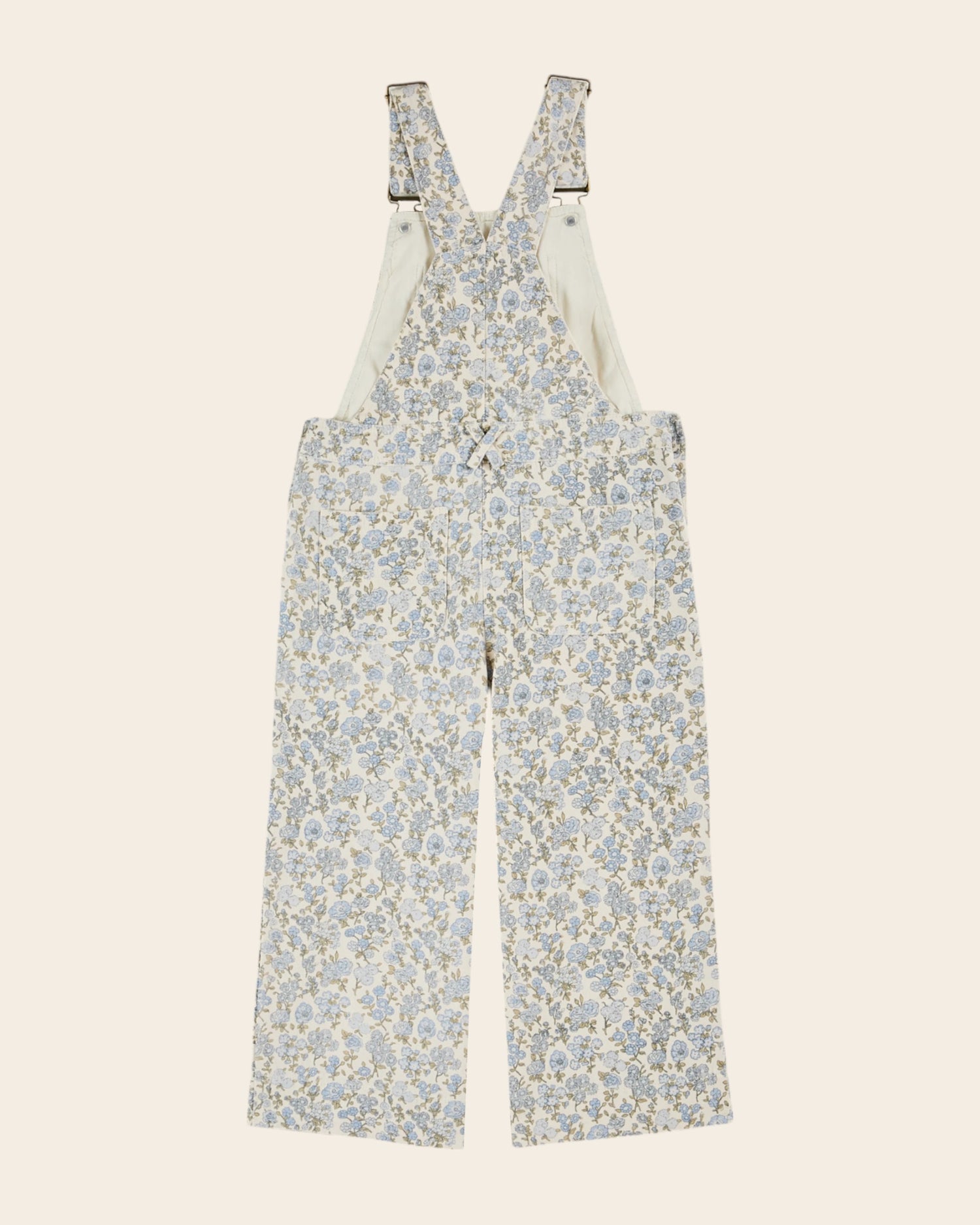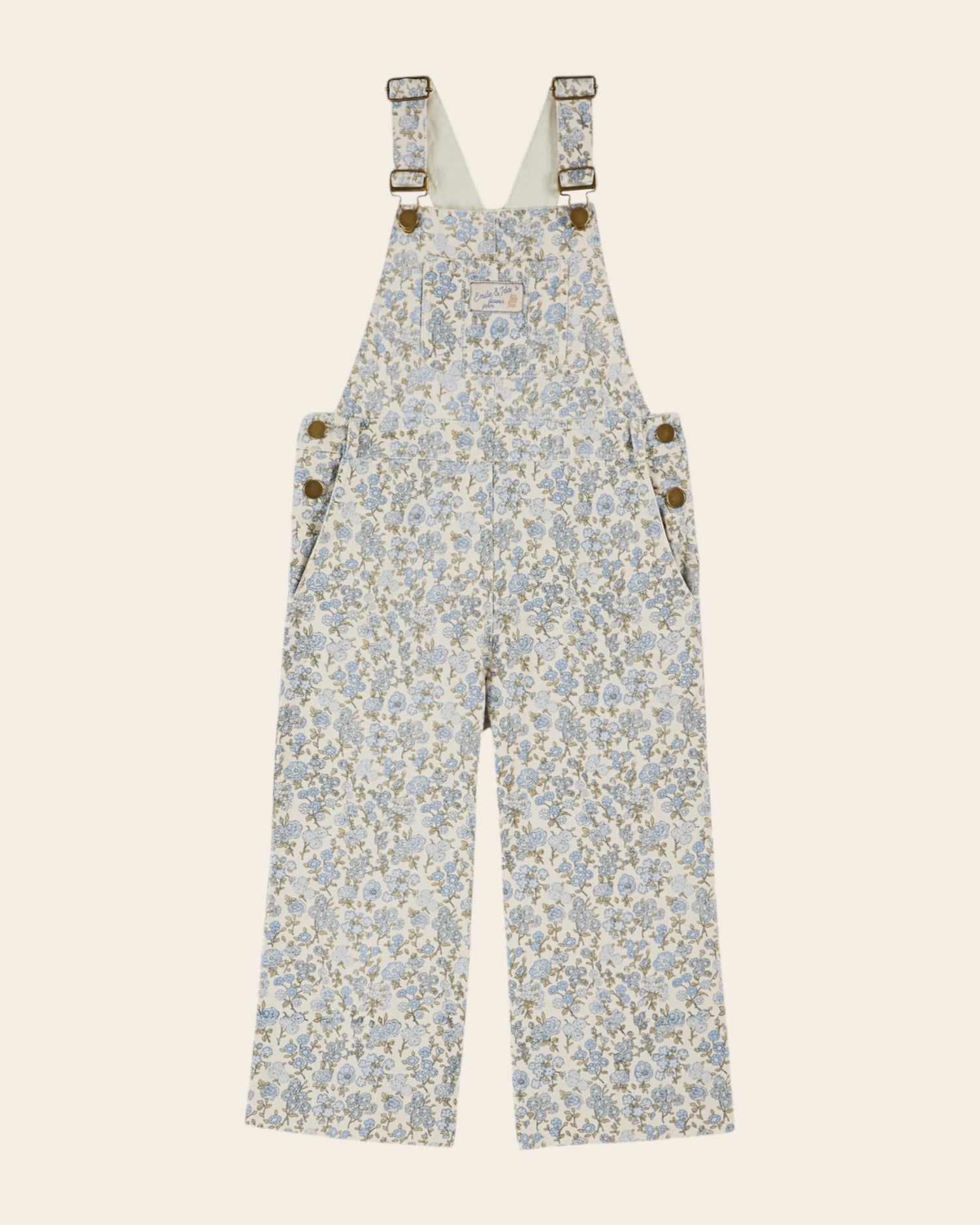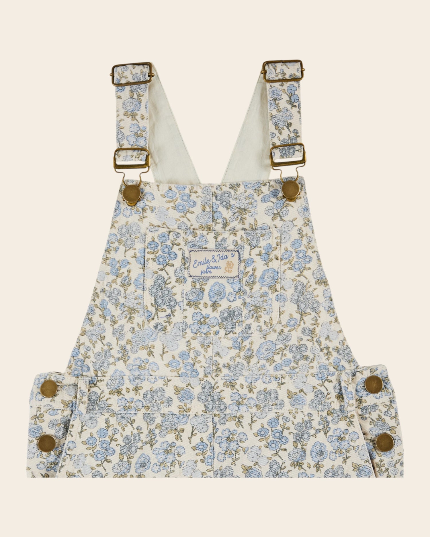 Salopette en toile de coton blanche imprimée en all-over de fleurs bleues. Une salopette pour faire corps avec le printemps, des couleurs pour inciter à la douceur !