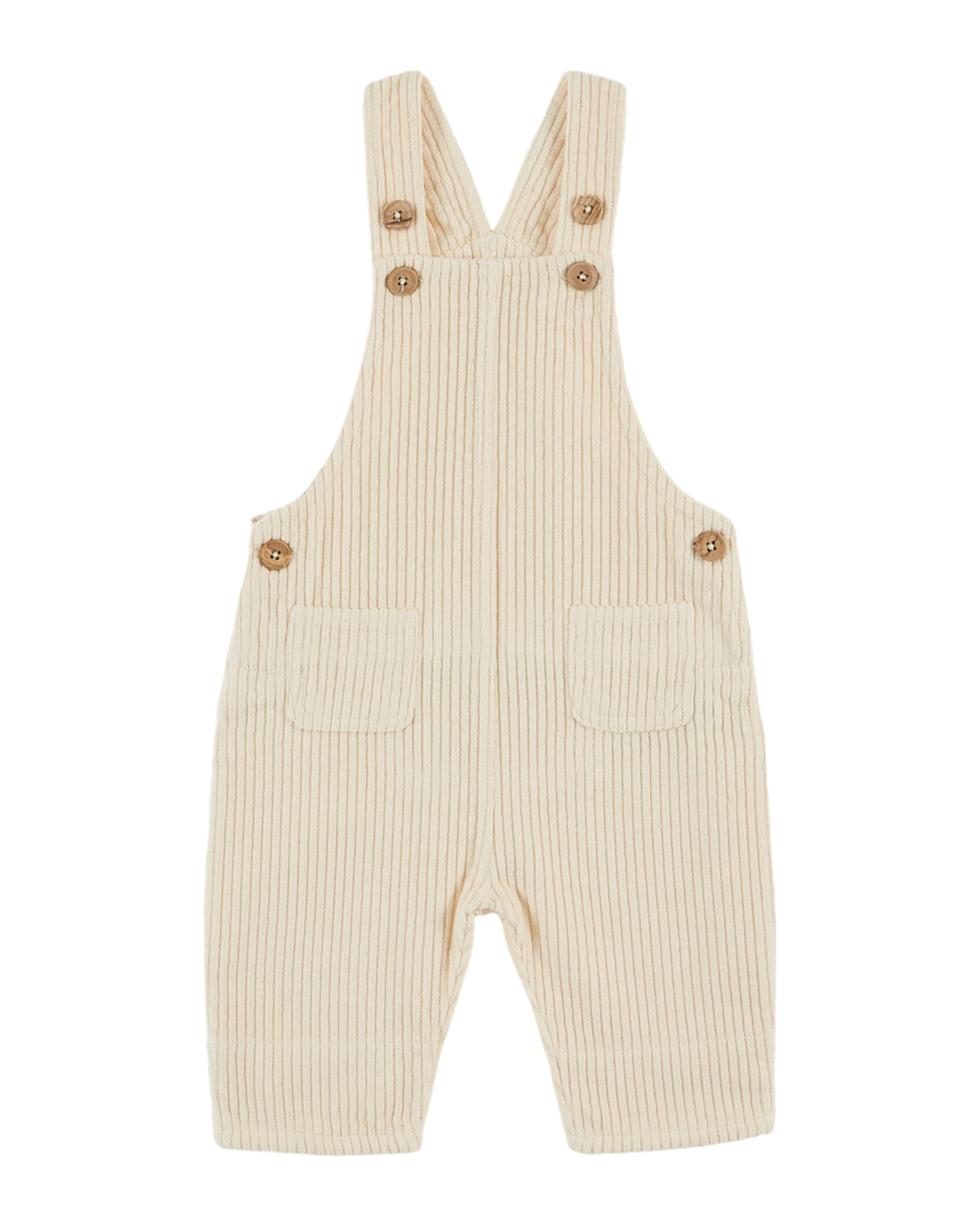 Salopette en velours de coton à grosses côtes écru uni.