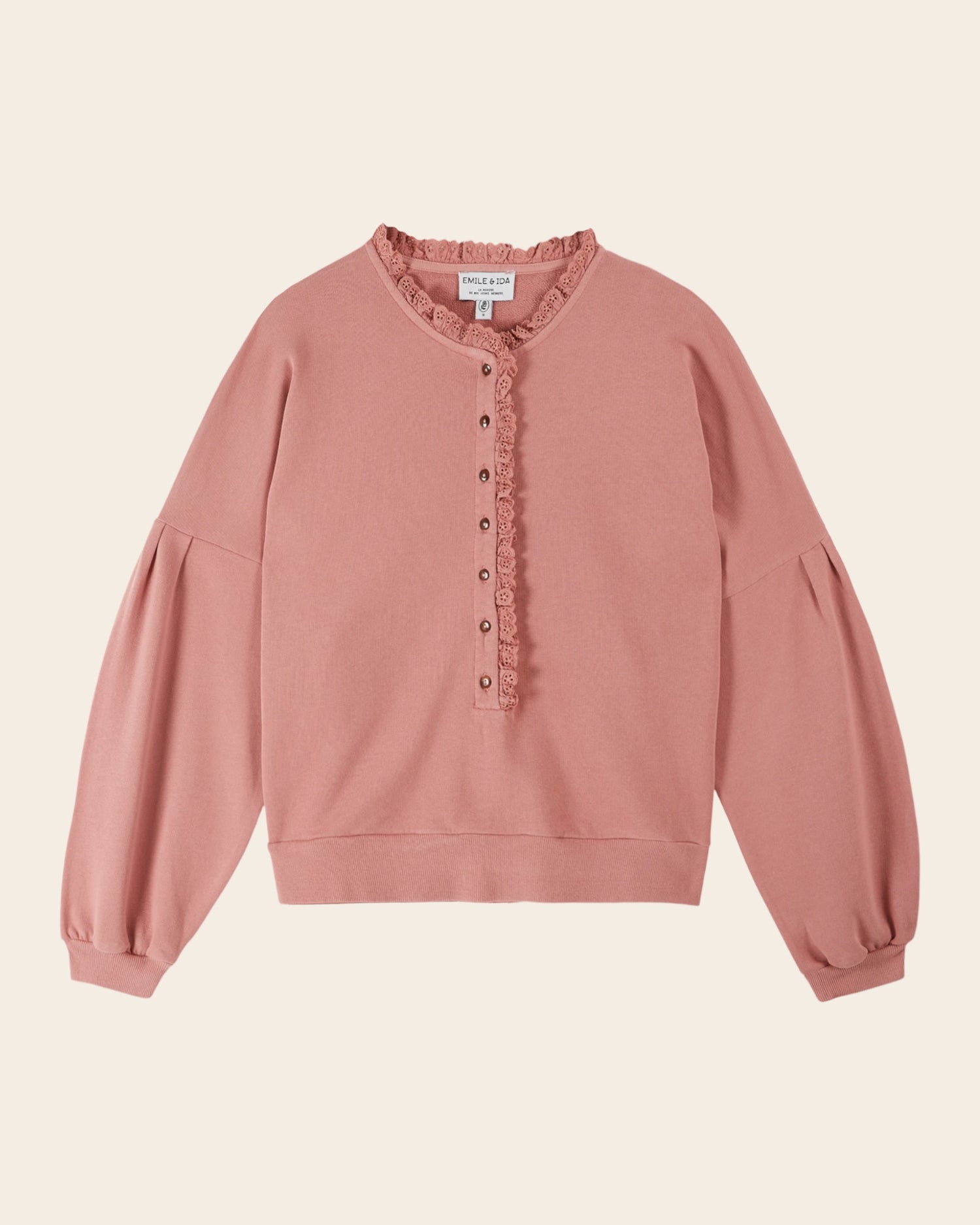 {"id":9685265023305,"title":"Sweat - Broderie anglaise rose","handle":"sweat-broderie-anglaise-ballerine","description":"\u003cp\u003eSweatshirt en jersey de coton bio molletonné rose.\n\u003cbr\u003e- Coupe over-size \n\u003cbr\u003e- Matière d'une grande douceur\n\u003cbr\u003e- Col et patte de boutonnage en galon de broderie anglaise\n\u003cbr\u003e- Finitions en bord-côte ton sur ton\n\u003cbr\u003e- Manches longues et larges\u003c\/p\u003e","published_at":"2026-02-17T14:14:33+01:00","created_at":"2025-05-30T16:03:33+02:00","vendor":"Only You","type":"Sweats","tags":["badge: coton bio","coton bio","FEMME","FM-IDA-DA-BALLERINE","FM-SPLIT_MASTER_COLOR","SS26","SS26-WOMAN","SWEATSHIRTS","woman"],"price":12900,"price_min":12900,"price_max":12900,"available":true,"price_varies":false,"compare_at_price":null,"compare_at_price_min":0,"compare_at_price_max":0,"compare_at_price_varies":false,"variants":[{"id":52402774999369,"title":"XXS","option1":"XXS","option2":null,"option3":null,"sku":"IDA-DA-BALLERINE-XXS#282710","requires_shipping":true,"taxable":true,"featured_image":null,"available":true,"name":"Sweat - Broderie anglaise rose - XXS","public_title":"XXS","options":["XXS"],"price":12900,"weight":347,"compare_at_price":null,"inventory_management":"shopify","barcode":"3664547681893","requires_selling_plan":false,"selling_plan_allocations":[]},{"id":52417400668489,"title":"XS","option1":"XS","option2":null,"option3":null,"sku":"IDA-DA-BALLERINE-XS#282913","requires_shipping":true,"taxable":true,"featured_image":null,"available":true,"name":"Sweat - Broderie anglaise rose - XS","public_title":"XS","options":["XS"],"price":12900,"weight":347,"compare_at_price":null,"inventory_management":"shopify","barcode":"3664547681916","requires_selling_plan":false,"selling_plan_allocations":[]},{"id":52417400701257,"title":"S","option1":"S","option2":null,"option3":null,"sku":"IDA-DA-BALLERINE-S#282915","requires_shipping":true,"taxable":true,"featured_image":null,"available":true,"name":"Sweat - Broderie anglaise rose - S","public_title":"S","options":["S"],"price":12900,"weight":347,"compare_at_price":null,"inventory_management":"shopify","barcode":"3664547681930","requires_selling_plan":false,"selling_plan_allocations":[]},{"id":52417400734025,"title":"M","option1":"M","option2":null,"option3":null,"sku":"IDA-DA-BALLERINE-M#282917","requires_shipping":true,"taxable":true,"featured_image":null,"available":true,"name":"Sweat - Broderie anglaise rose - M","public_title":"M","options":["M"],"price":12900,"weight":347,"compare_at_price":null,"inventory_management":"shopify","barcode":"3664547681954","requires_selling_plan":false,"selling_plan_allocations":[]},{"id":52417400766793,"title":"L","option1":"L","option2":null,"option3":null,"sku":"IDA-DA-BALLERINE-L#282919","requires_shipping":true,"taxable":true,"featured_image":null,"available":true,"name":"Sweat - Broderie anglaise rose - L","public_title":"L","options":["L"],"price":12900,"weight":347,"compare_at_price":null,"inventory_management":"shopify","barcode":"3664547681978","requires_selling_plan":false,"selling_plan_allocations":[]},{"id":52417400799561,"title":"XL","option1":"XL","option2":null,"option3":null,"sku":"IDA-DA-BALLERINE-XL#282921","requires_shipping":true,"taxable":true,"featured_image":null,"available":true,"name":"Sweat - Broderie anglaise rose - XL","public_title":"XL","options":["XL"],"price":12900,"weight":347,"compare_at_price":null,"inventory_management":"shopify","barcode":"3664547681992","requires_selling_plan":false,"selling_plan_allocations":[]}],"images":["\/\/www.emileetida.com\/cdn\/shop\/files\/IDA-DA-ballerine-01.jpg?v=1767882444"],"featured_image":"\/\/www.emileetida.com\/cdn\/shop\/files\/IDA-DA-ballerine-01.jpg?v=1767882444","options":["Taille"],"media":[{"alt":null,"id":55465288925513,"position":1,"preview_image":{"aspect_ratio":0.8,"height":2500,"width":2000,"src":"\/\/www.emileetida.com\/cdn\/shop\/files\/IDA-DA-ballerine-01.jpg?v=1767882444"},"aspect_ratio":0.8,"height":2500,"media_type":"image","src":"\/\/www.emileetida.com\/cdn\/shop\/files\/IDA-DA-ballerine-01.jpg?v=1767882444","width":2000}],"requires_selling_plan":false,"selling_plan_groups":[],"content":"\u003cp\u003eSweatshirt en jersey de coton bio molletonné rose.\n\u003cbr\u003e- Coupe over-size \n\u003cbr\u003e- Matière d'une grande douceur\n\u003cbr\u003e- Col et patte de boutonnage en galon de broderie anglaise\n\u003cbr\u003e- Finitions en bord-côte ton sur ton\n\u003cbr\u003e- Manches longues et larges\u003c\/p\u003e"}