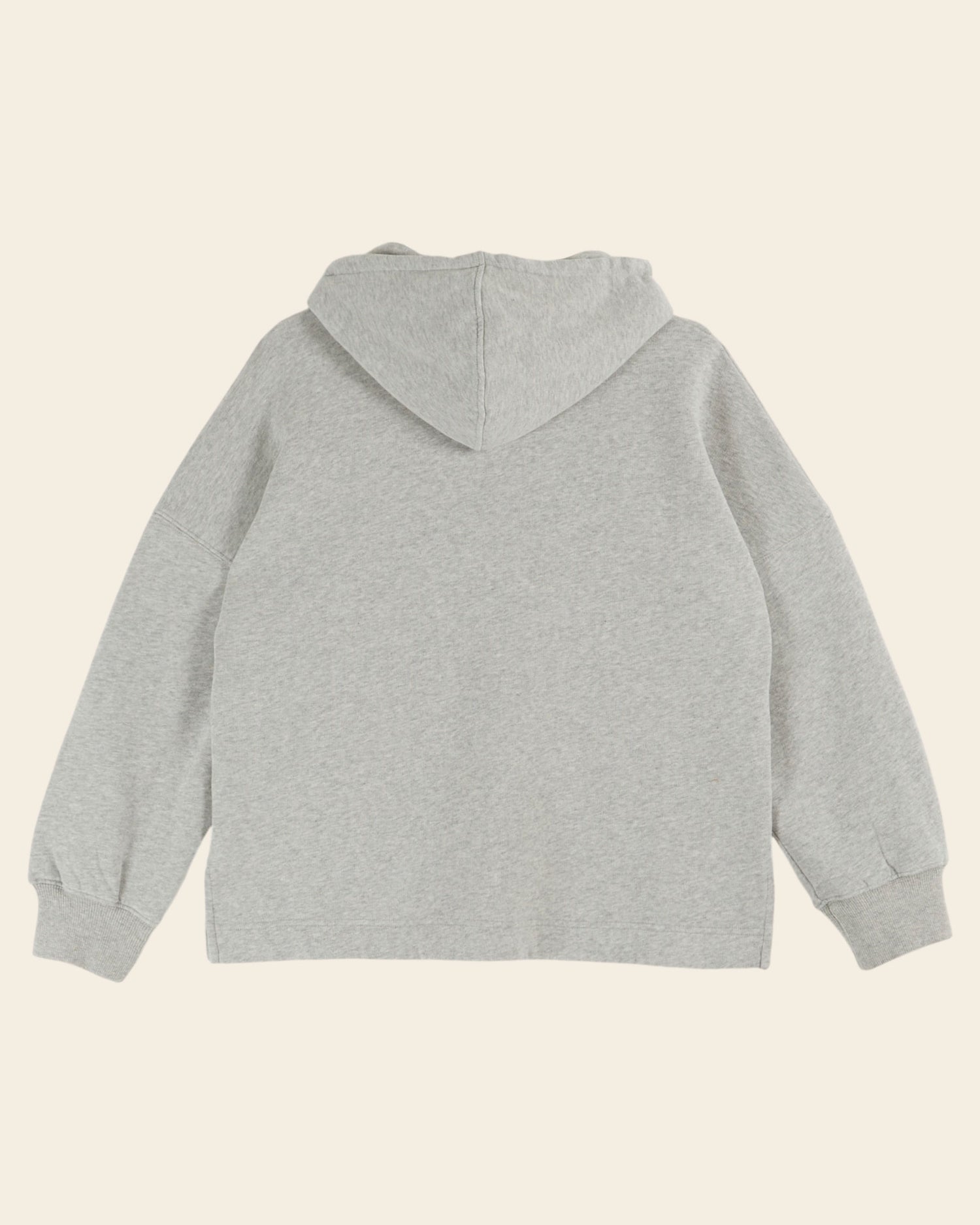 Sweatshirt en jersey de coton biologique molletonné gris chiné. - Forme over-size - Matière d'une grande douceur - Encolure ras du cou - Fente d'aisance dans les coutures latérales - Lien en sergé de coton écru siglé "Amour" - Emmanchures décalées - Ourlet à la base du sweat - Coeur brodé marine
