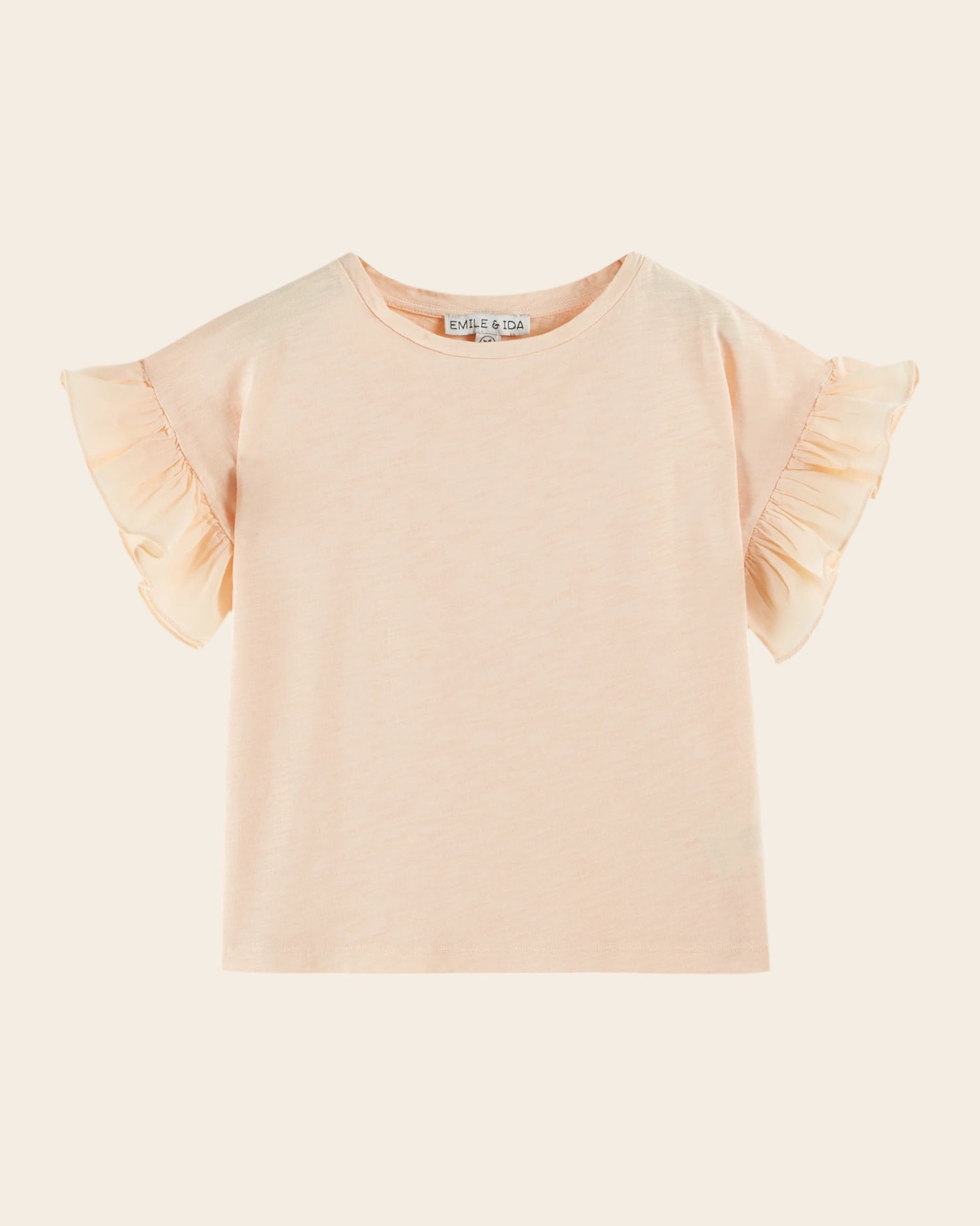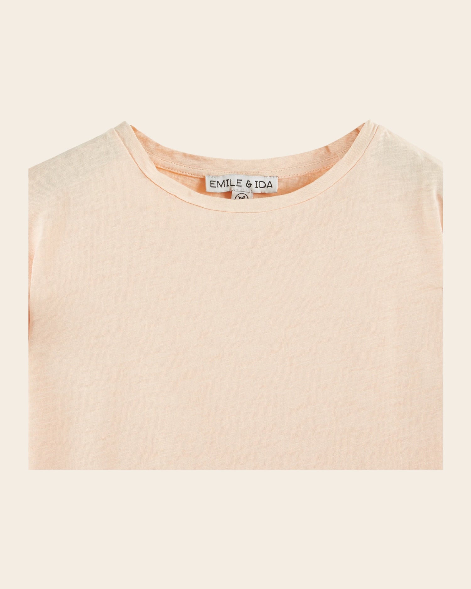 Tee-shirt en coton biologique flammé abricot.