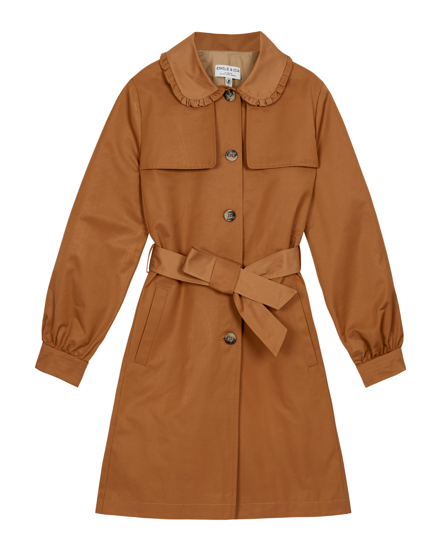 Un nouveau venu dans la collection Emile & Ida tout en élégance. Un trench imaginé pour flatter toutes les silhouettes. Outre le fait de se prémunir de la pluie avec une matière déperlante, nous y avons ajouté quelques fantaisies : col Claudine bordé par un petit froufrou, empiècements sur le devant, manches longues resserrées par des poignets ornés de surpiqûres. Une ceinture coulissante permet de marquer ou non la taille, les poches raglan de mettre ses mains au chaud et la doublure en coton gratté de s'isoler du froid douillettement.